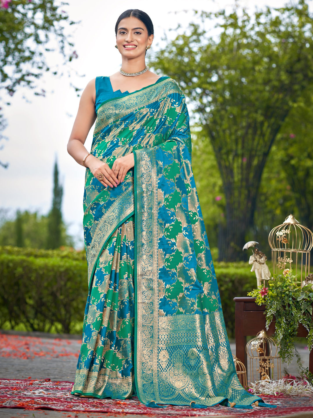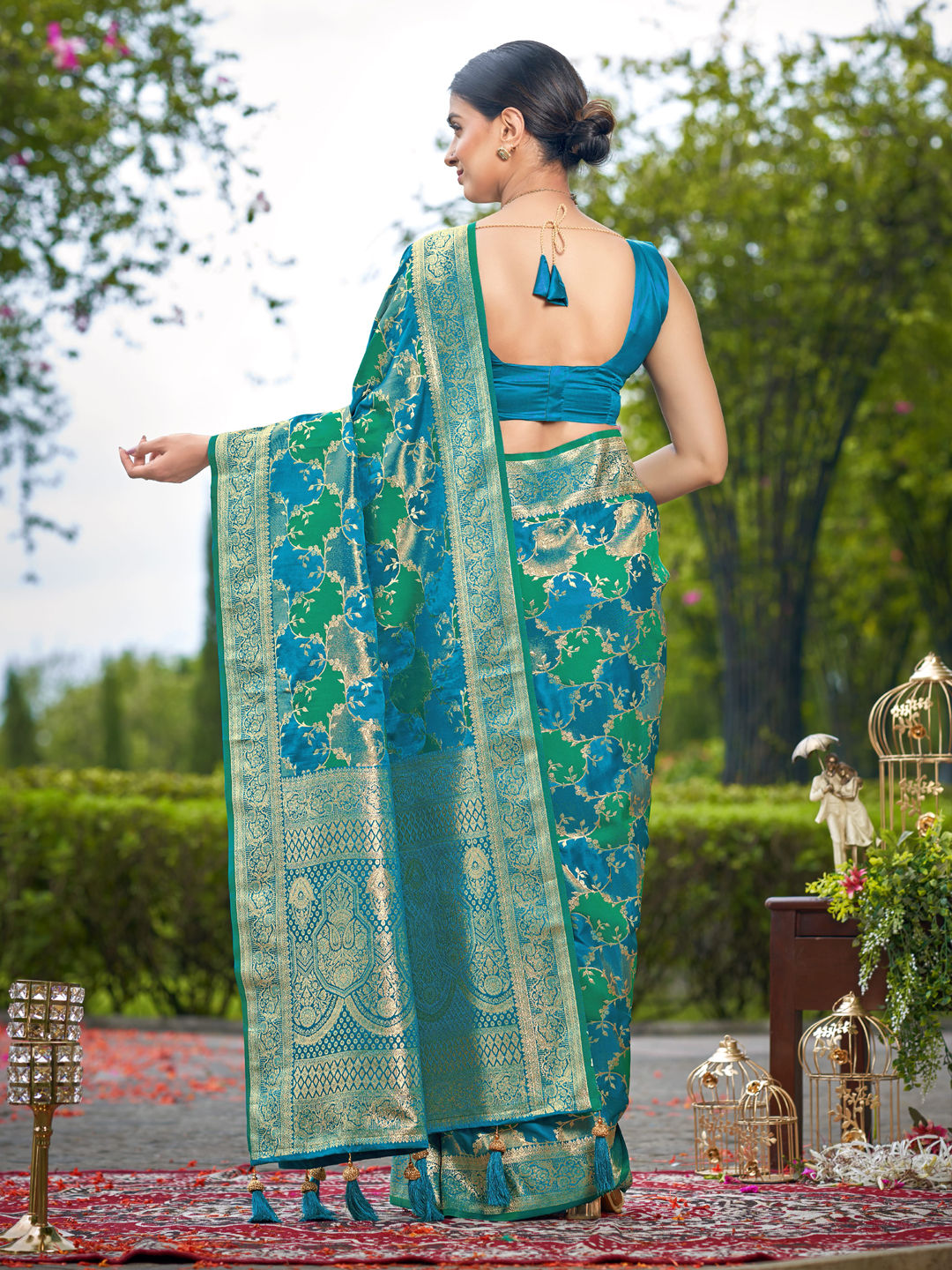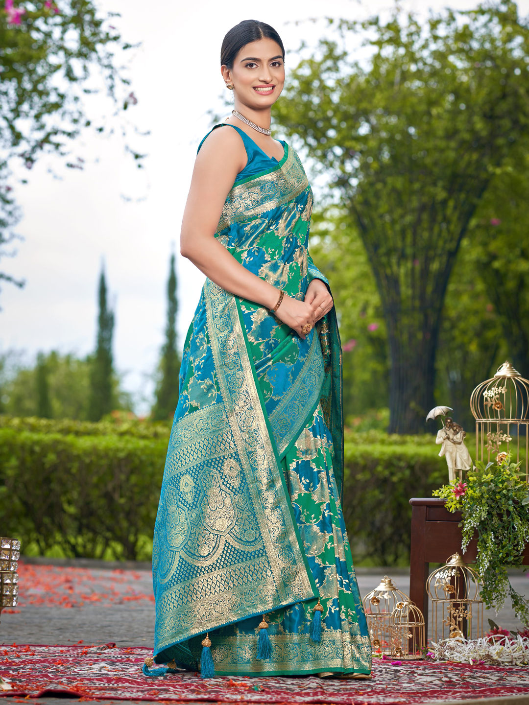 Banarasi Silk Wedding Saree in Blue with Zari work