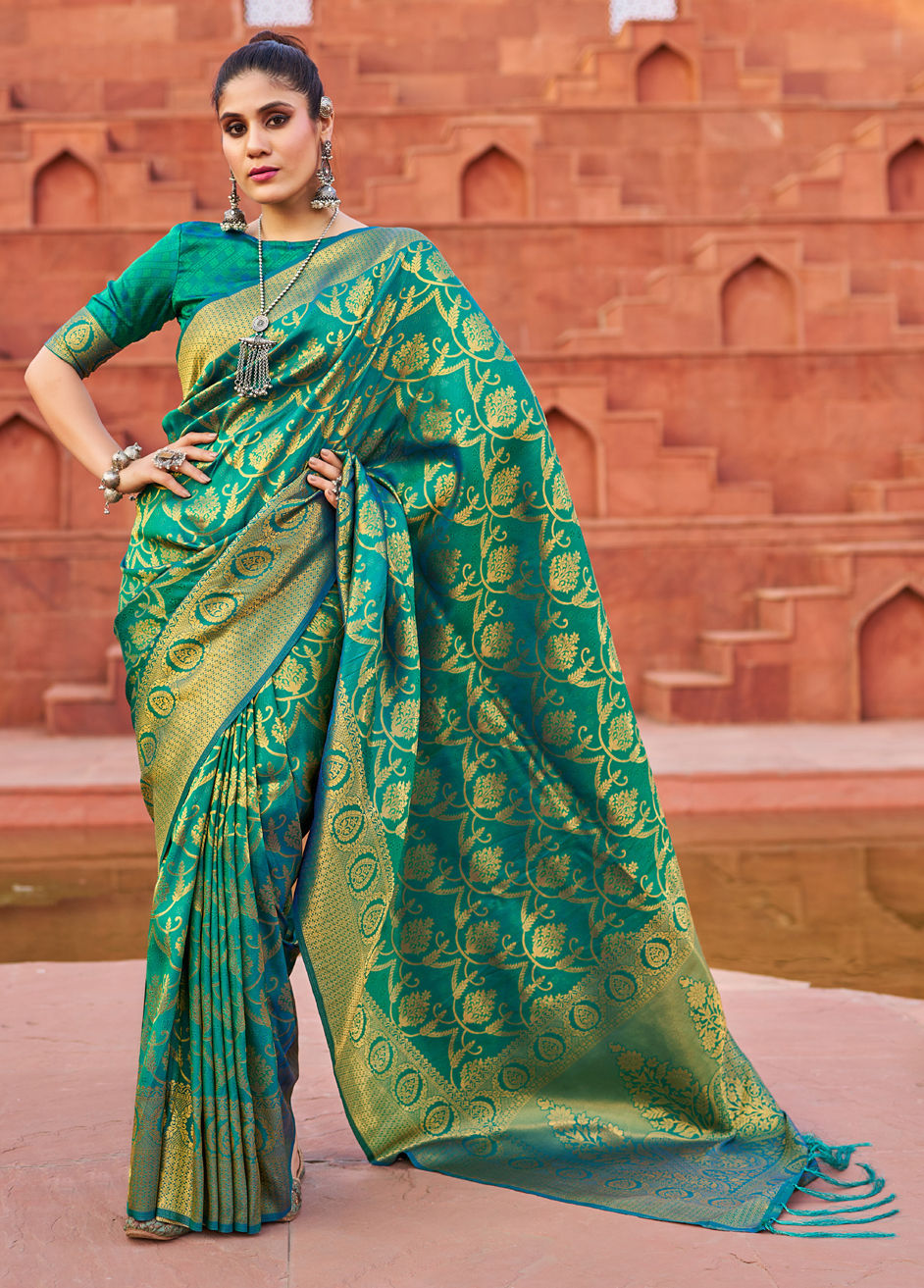 Green color Saree in Banarasi Silk fabric with Weaving work