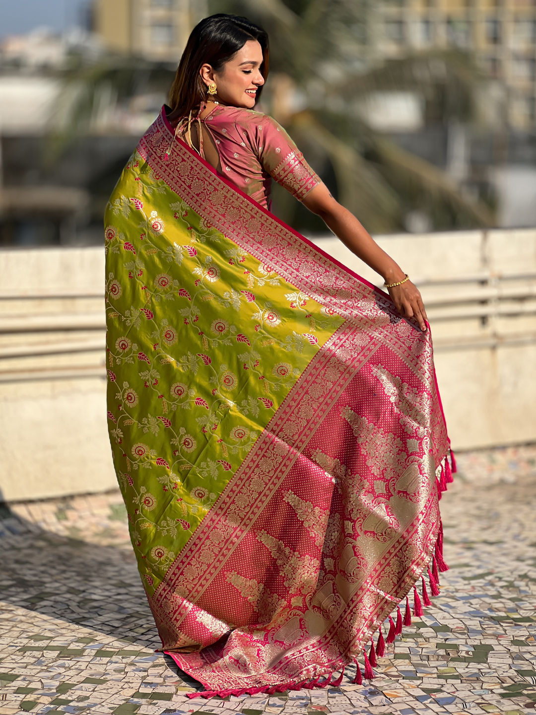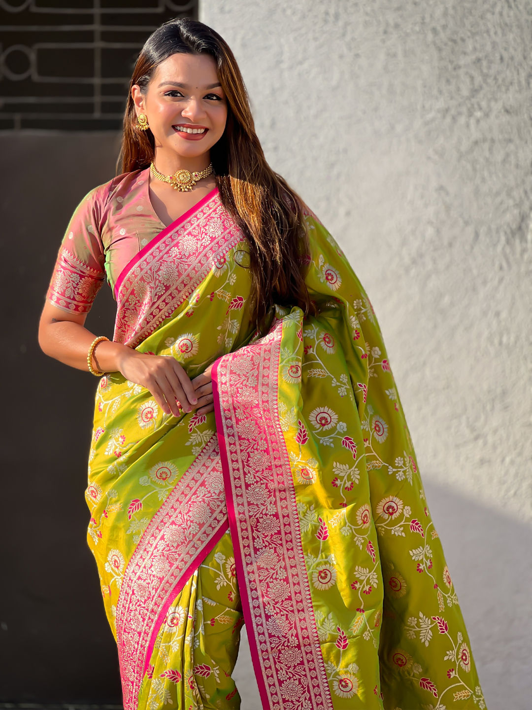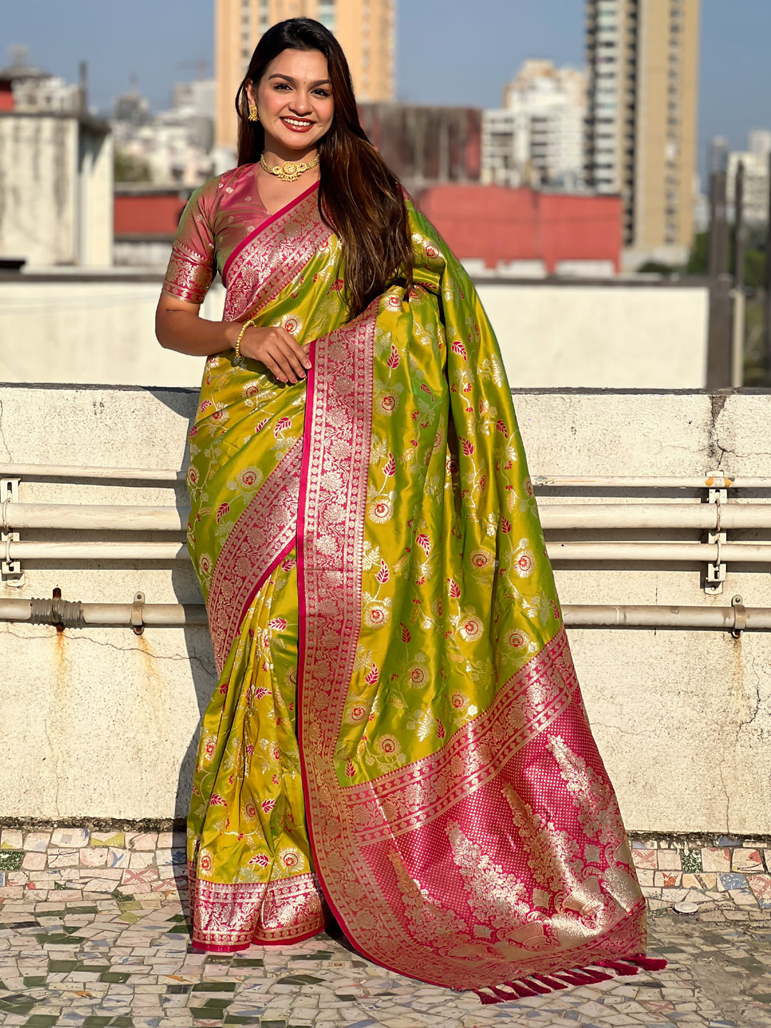Banarasi Silk Traditional Saree in Green with Weaving work