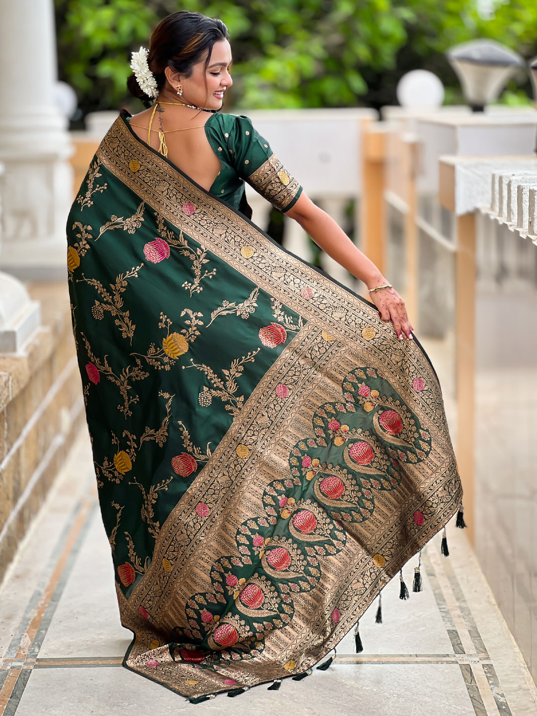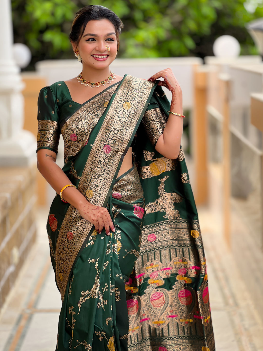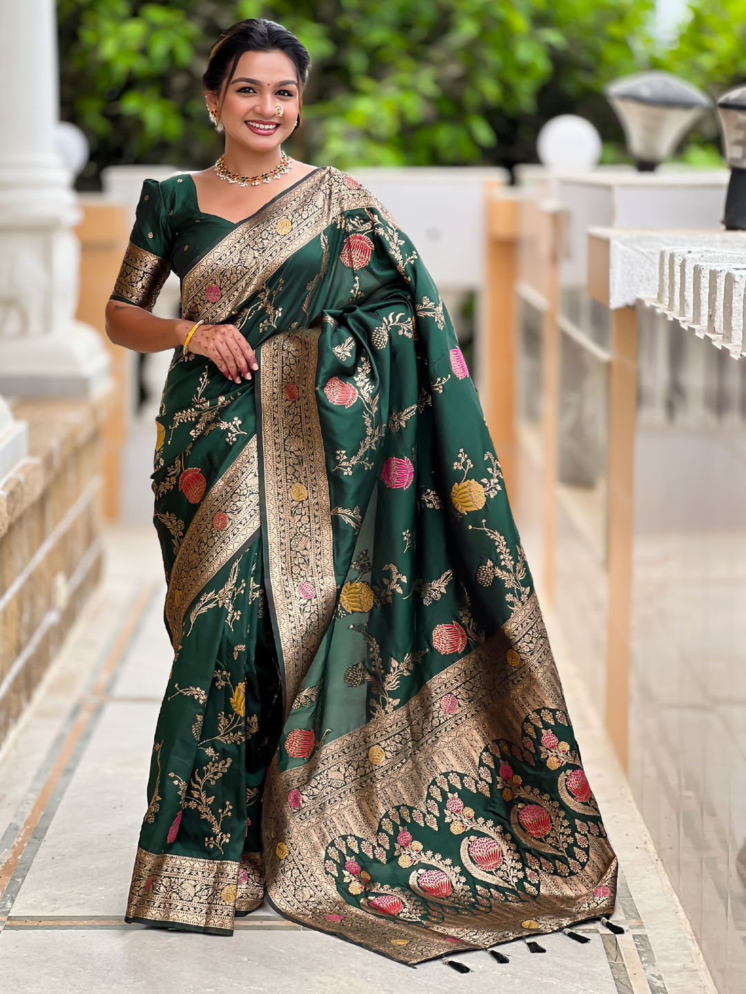 Banarasi Silk Festive Saree in Green with Weaving work