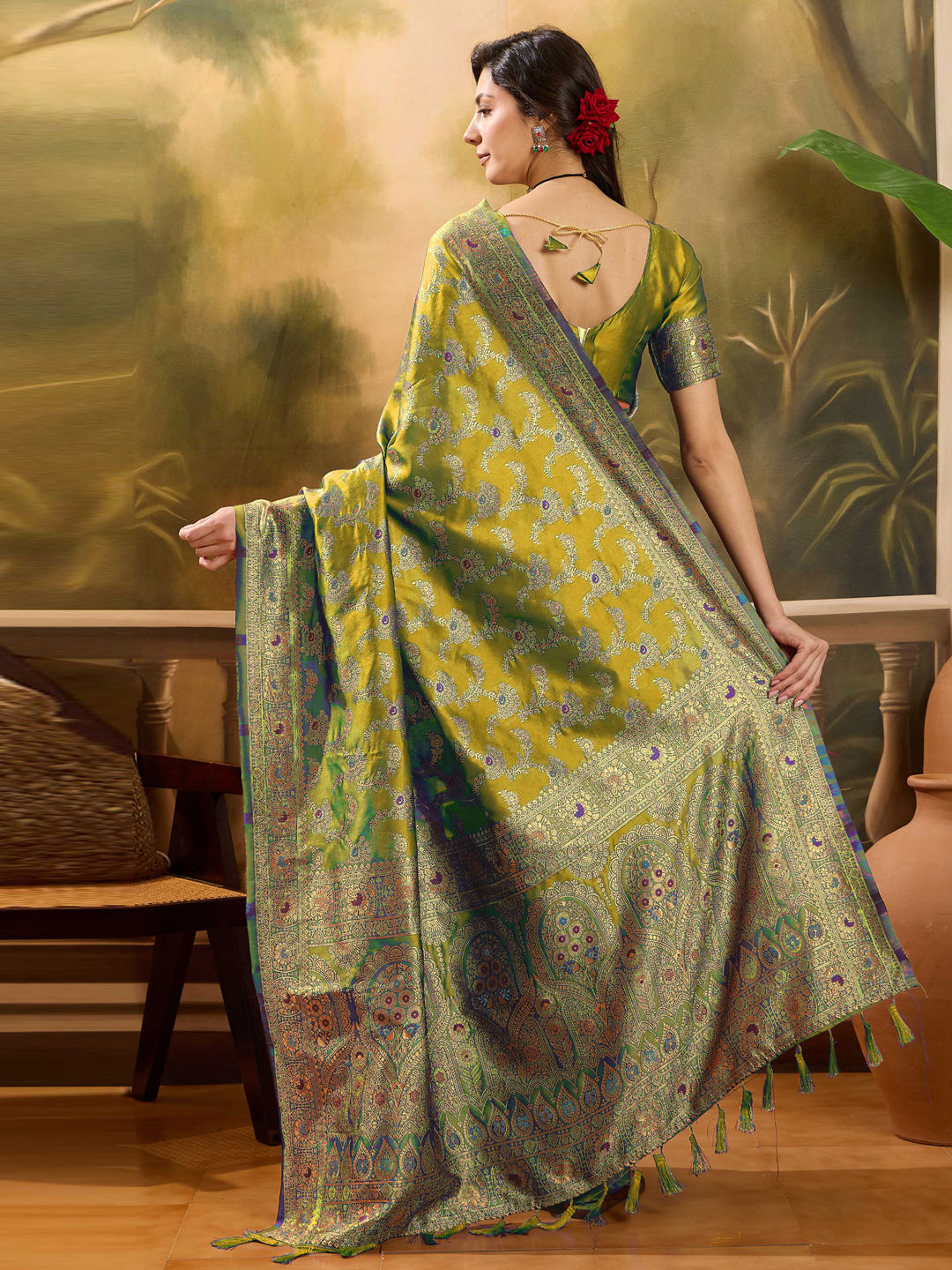 in Green with Weaving work