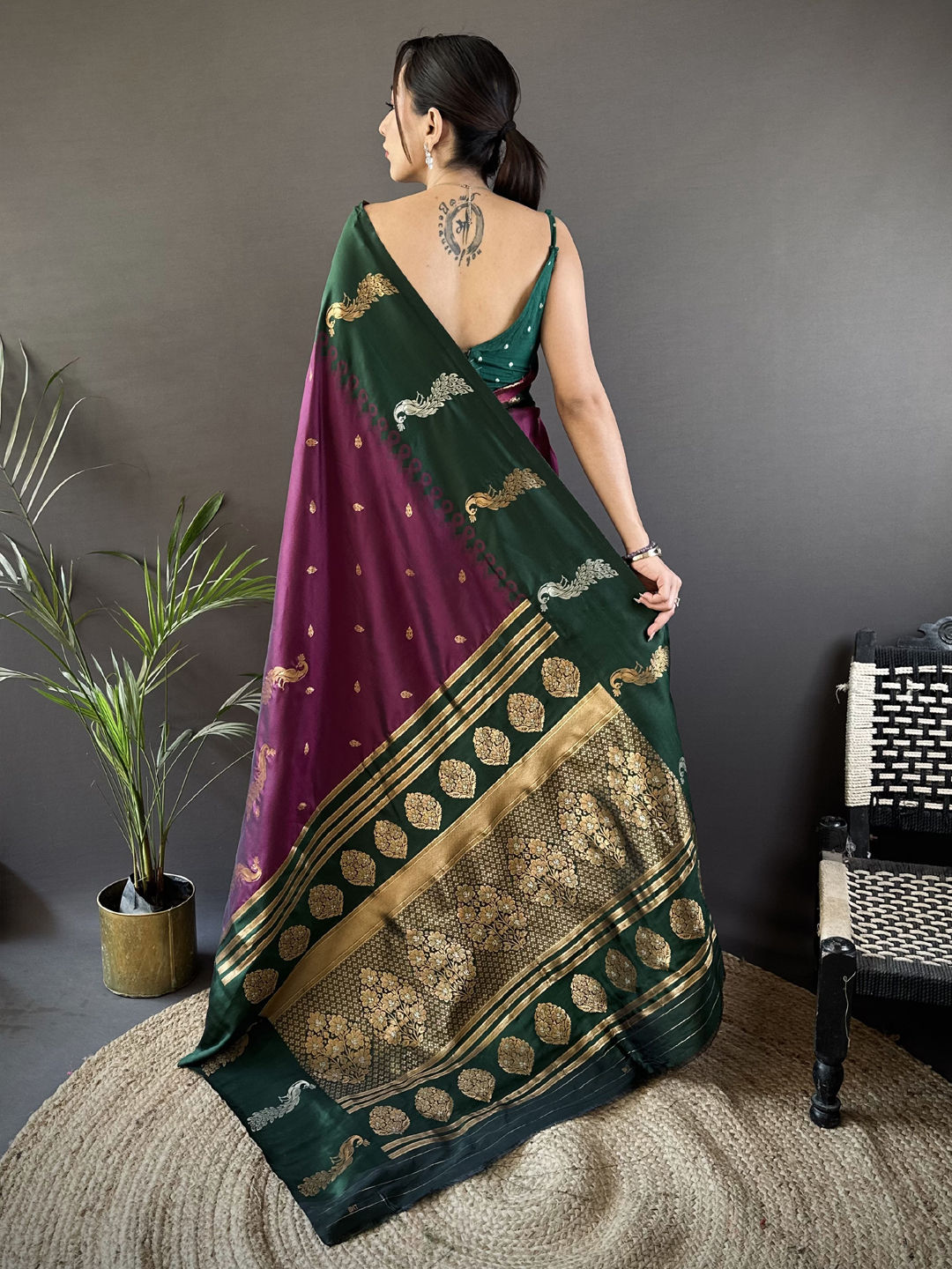 in Green with Weaving work
