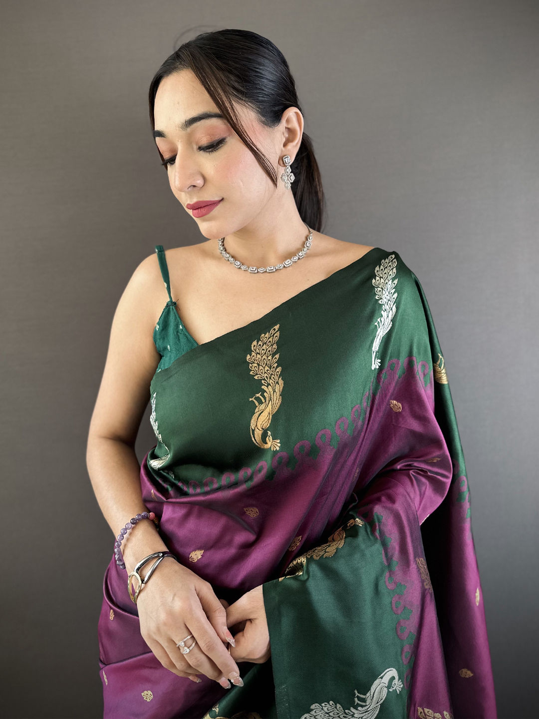Green, Purple and Violet color Saree in Banarasi Silk fabric with Weaving work