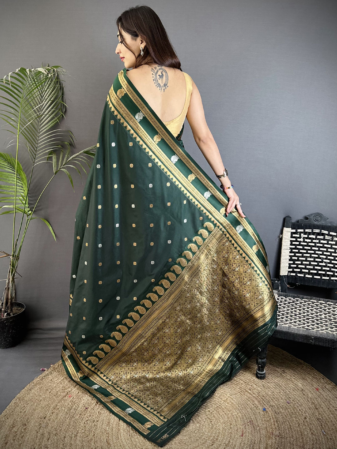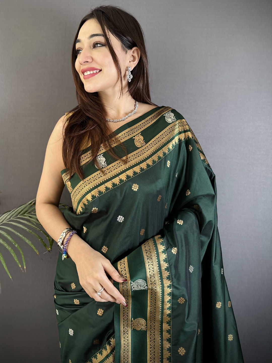 Green color Saree in Banarasi Silk fabric with Weaving work