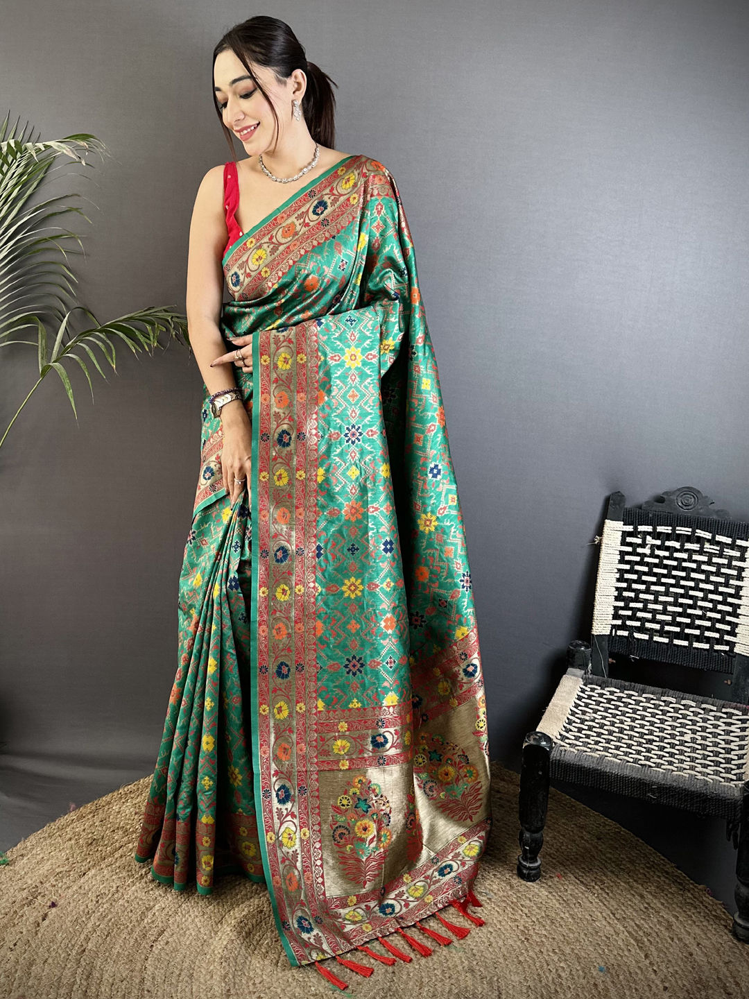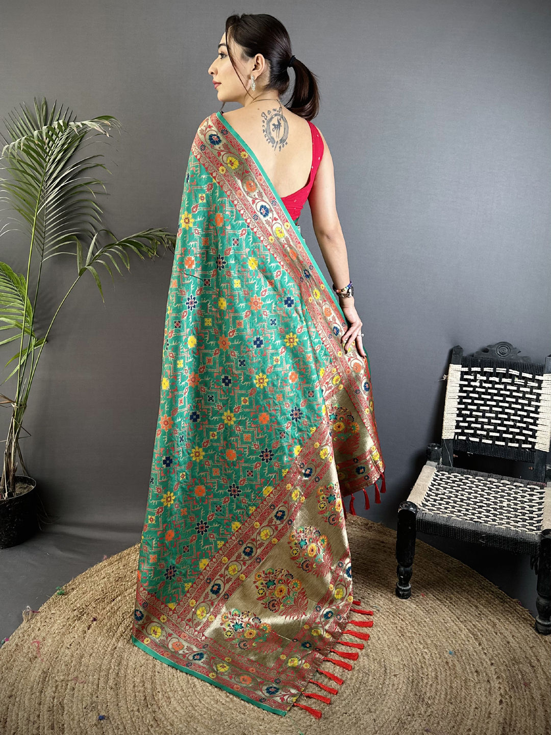 in Green with Weaving work