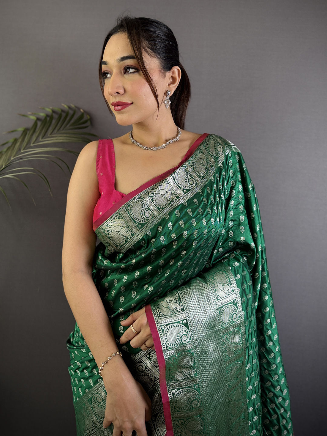 Green color Saree in Banarasi Silk fabric with Weaving work