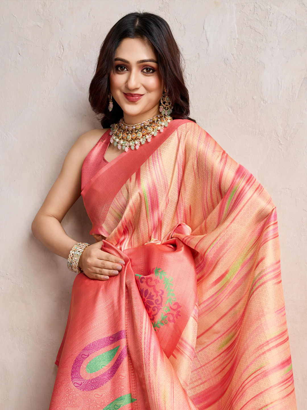 Pink and Majenta color Saree in Banarasi Silk fabric with Printed, Weaving work