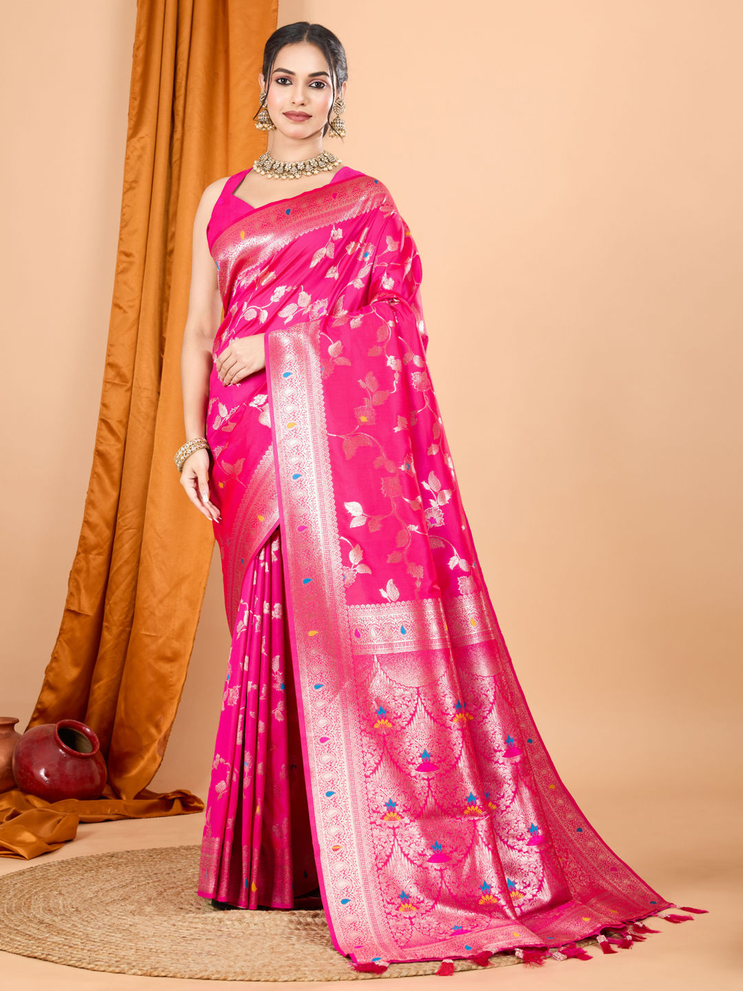 Pink and Majenta color Saree in Banarasi Silk fabric with Weaving, Zari work