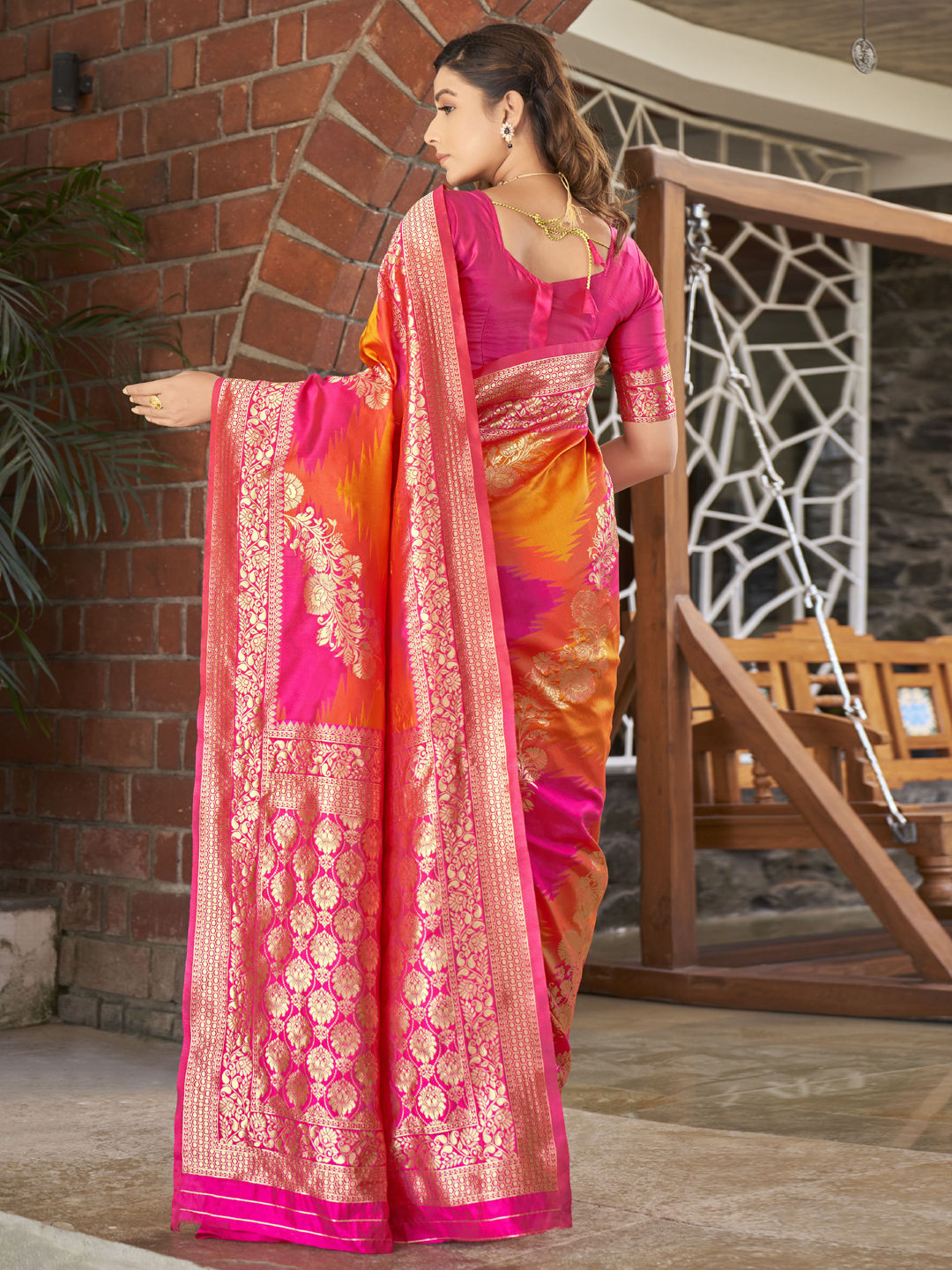 Banarasi Silk Festive Saree in Orange with Weaving work