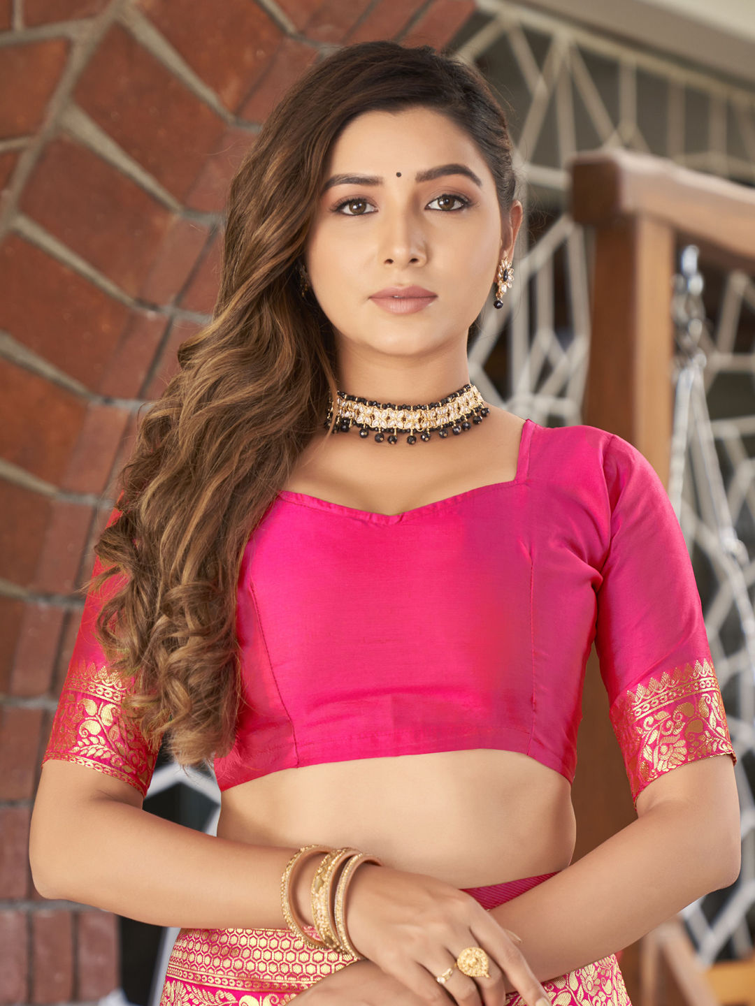 Pink and Majenta color Saree in Banarasi Silk fabric with Weaving work