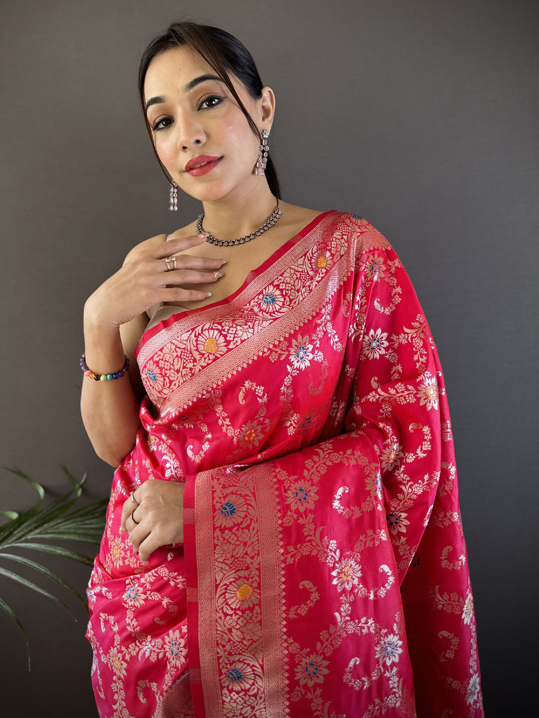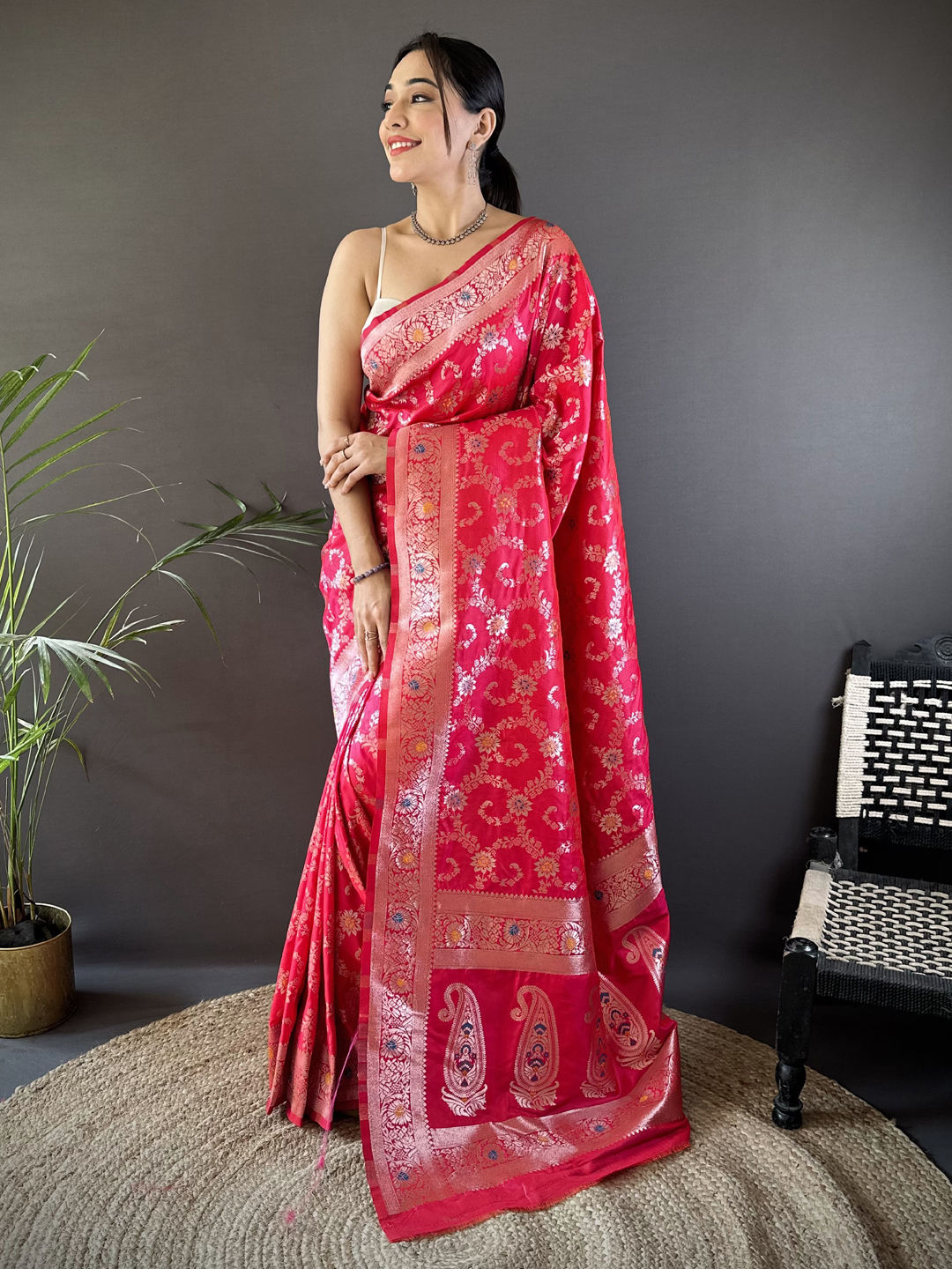 Pink and Majenta color Saree in Banarasi Silk fabric with Weaving work