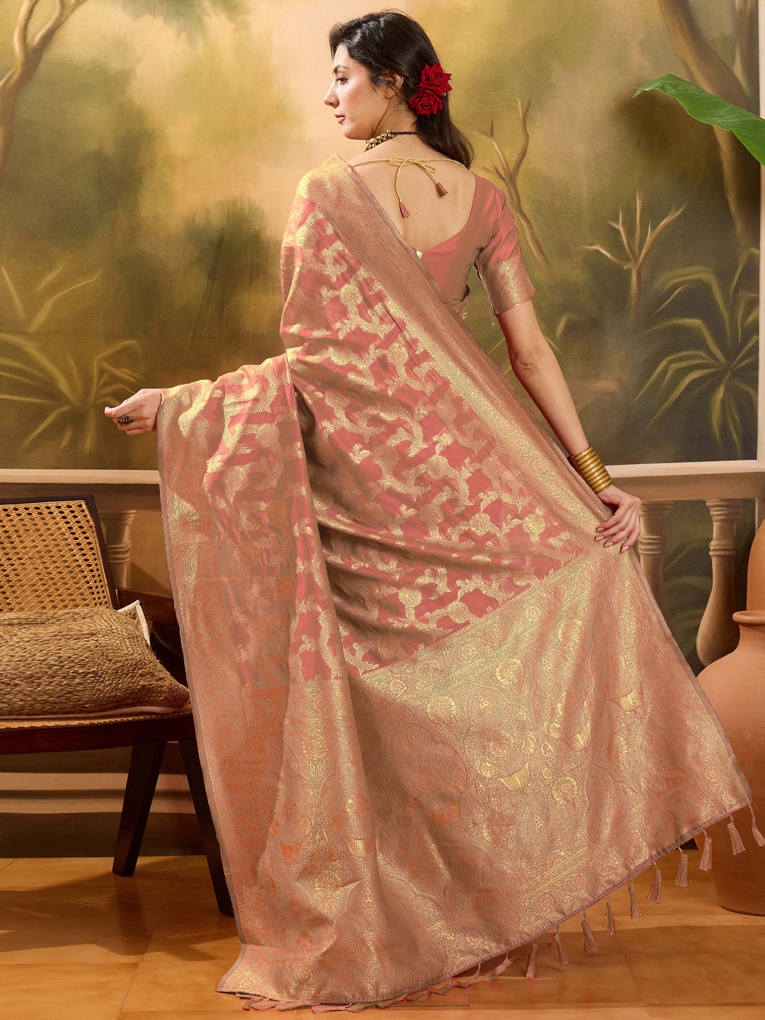 Banarasi Silk Festive Saree in Pink and Majenta with Weaving work