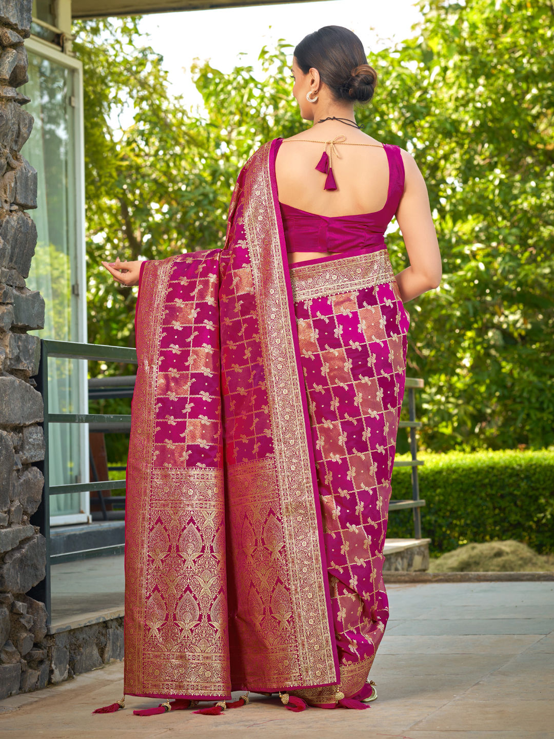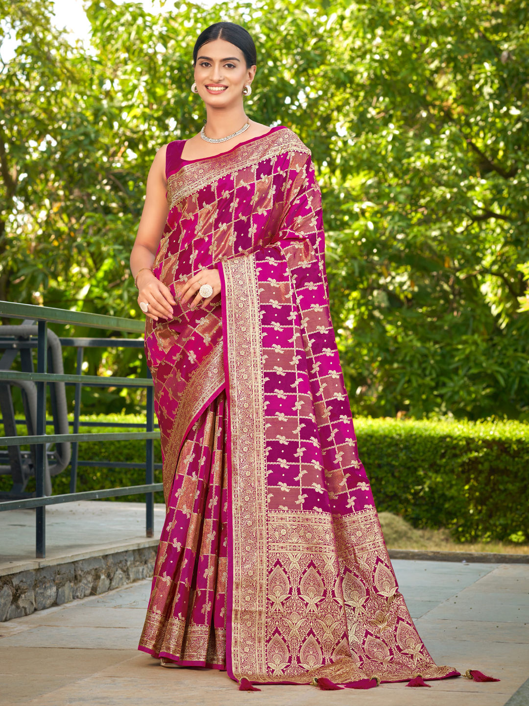 Pink and Majenta color Saree in Banarasi Silk fabric with Weaving, Zari work