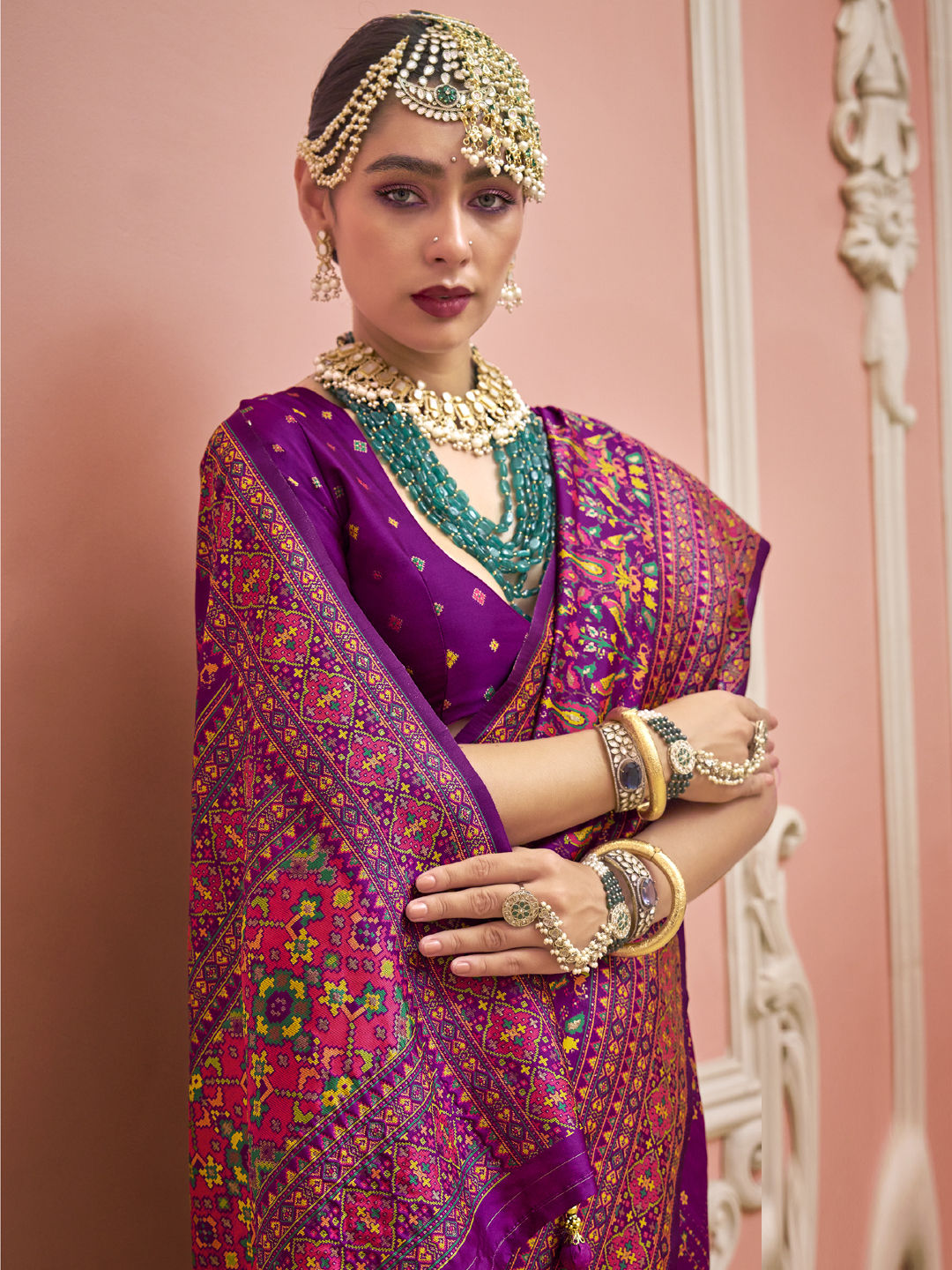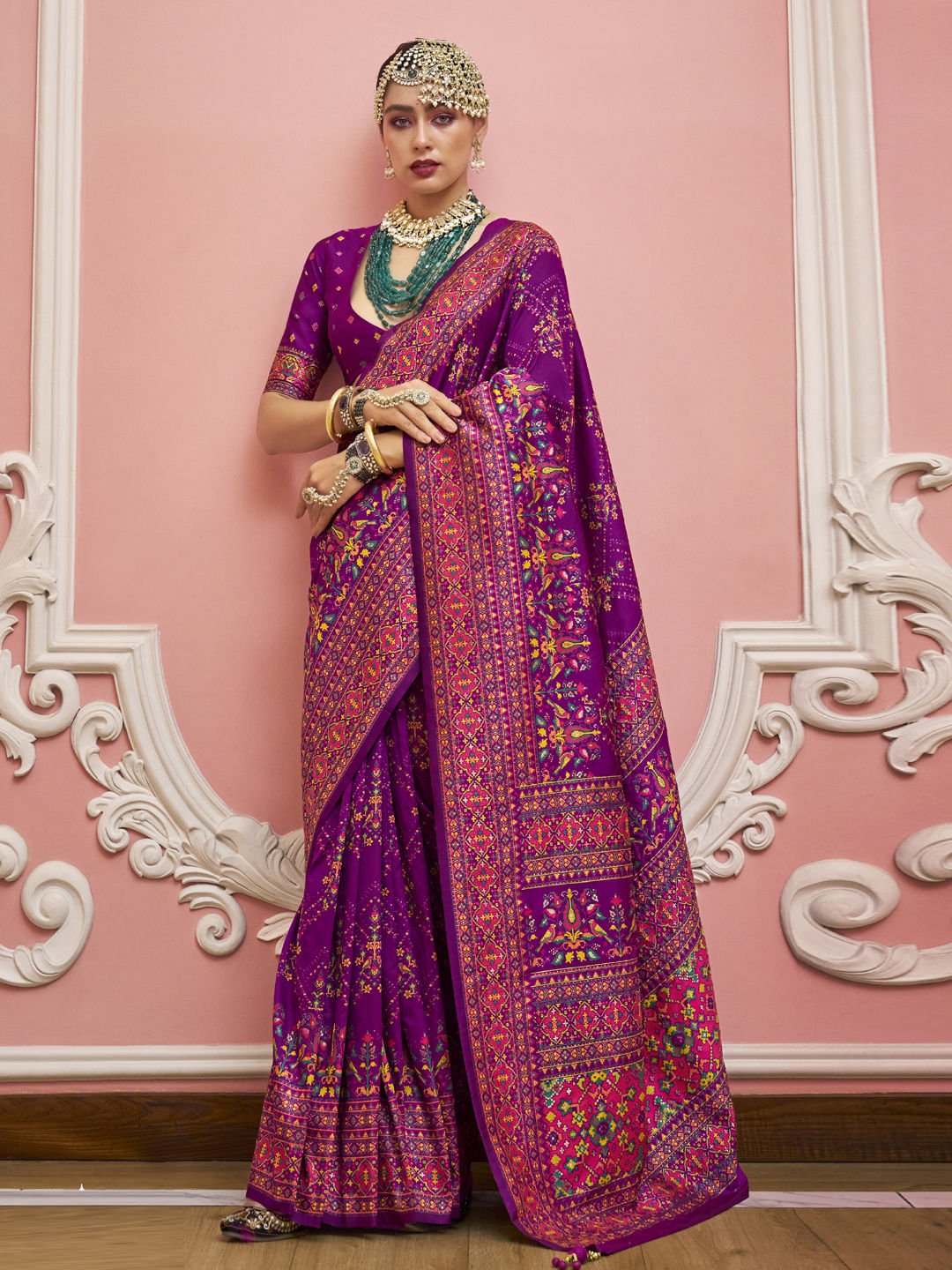 in Pink and Majenta with Weaving work
