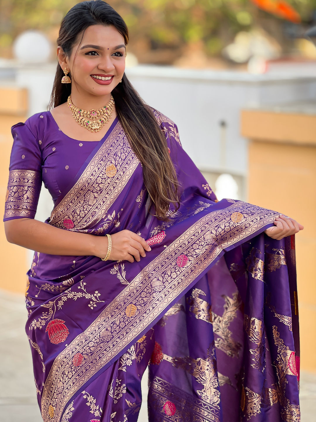 Banarasi Silk Festive Saree in Purple and Violet with Weaving work