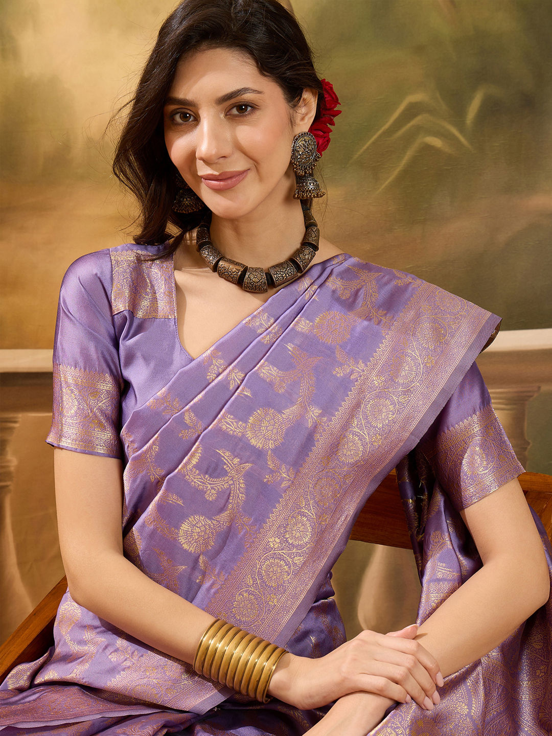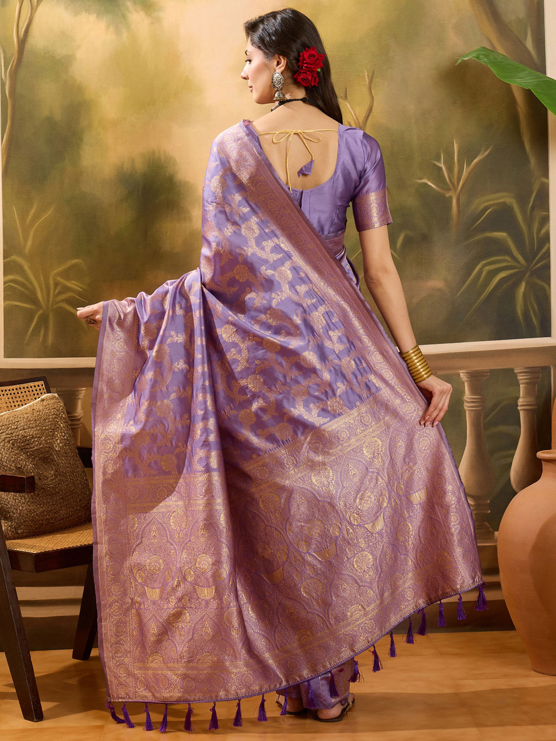 Banarasi Silk Festive Saree in Purple and Violet with Weaving work
