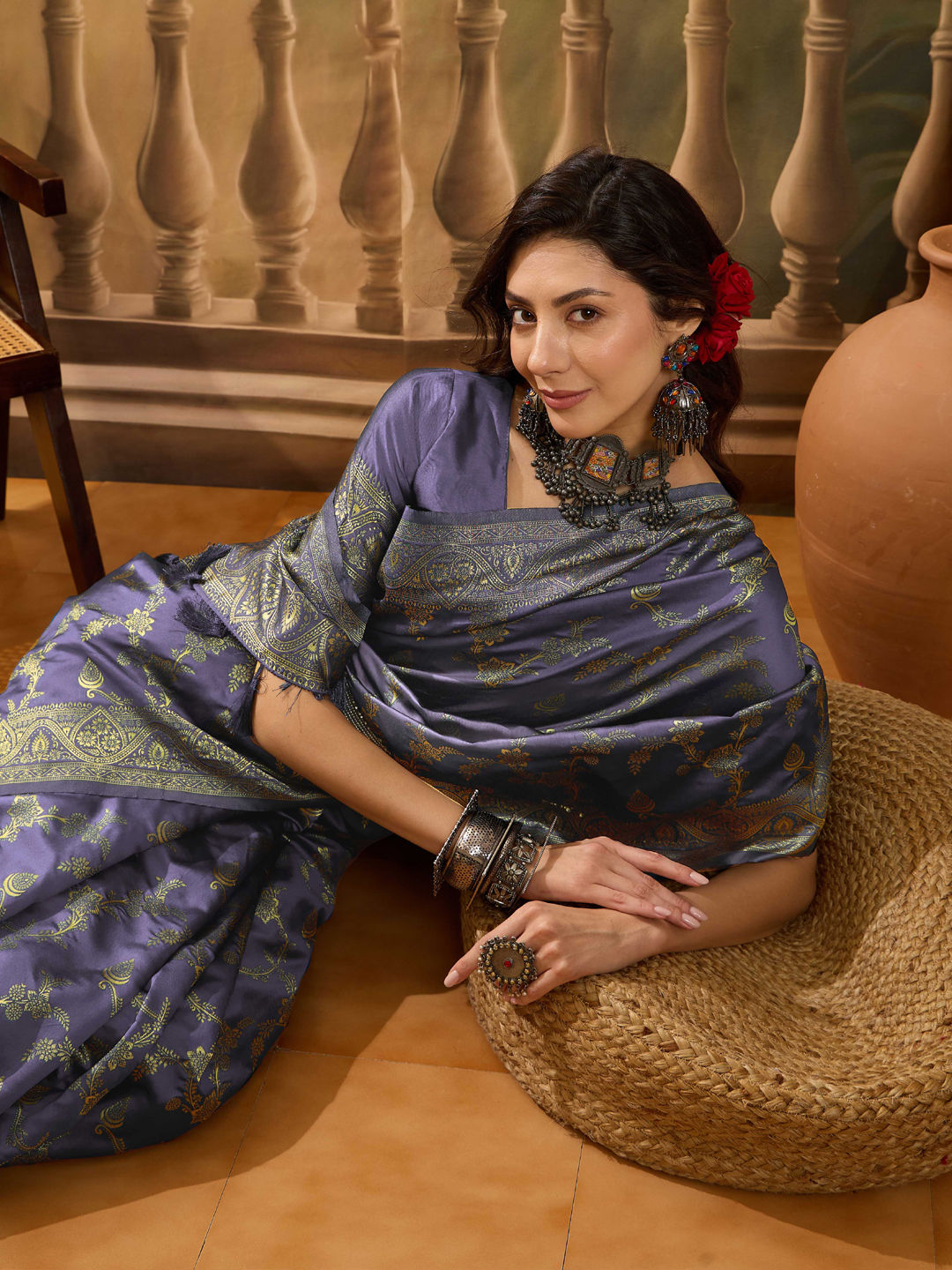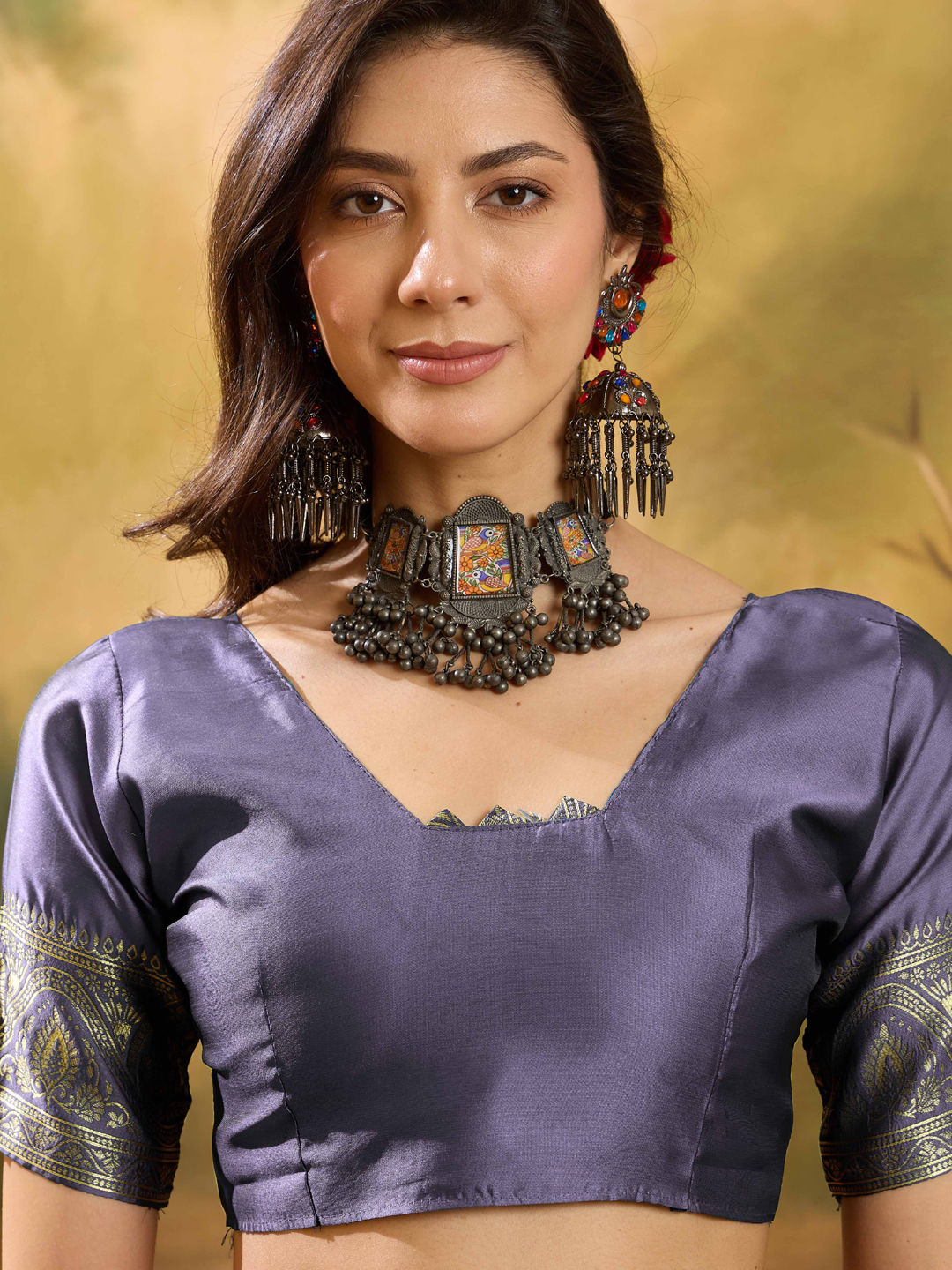 in Purple and Violet with Weaving work