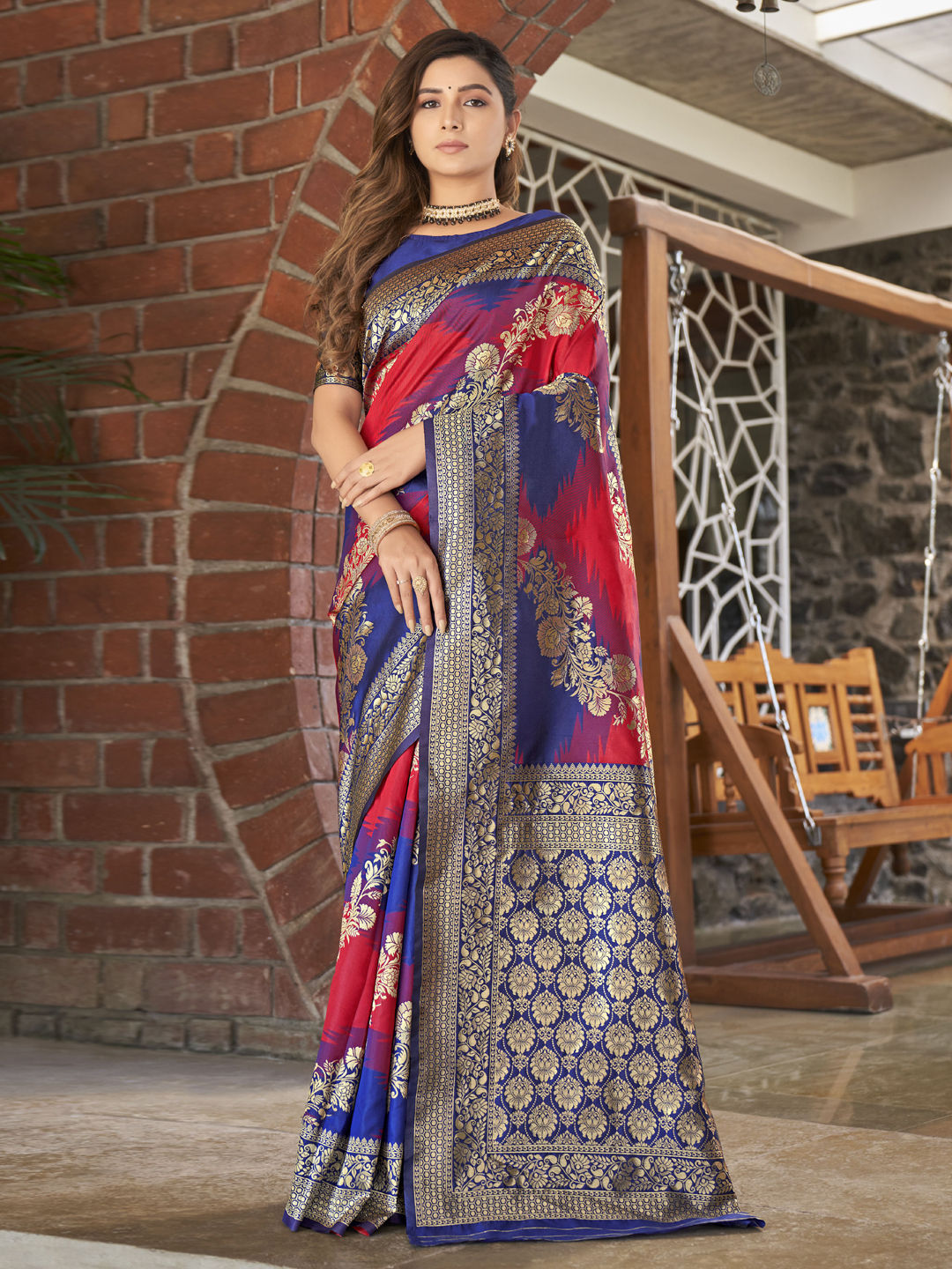 Banarasi Silk Festive Saree in Pink and Majenta with Weaving work