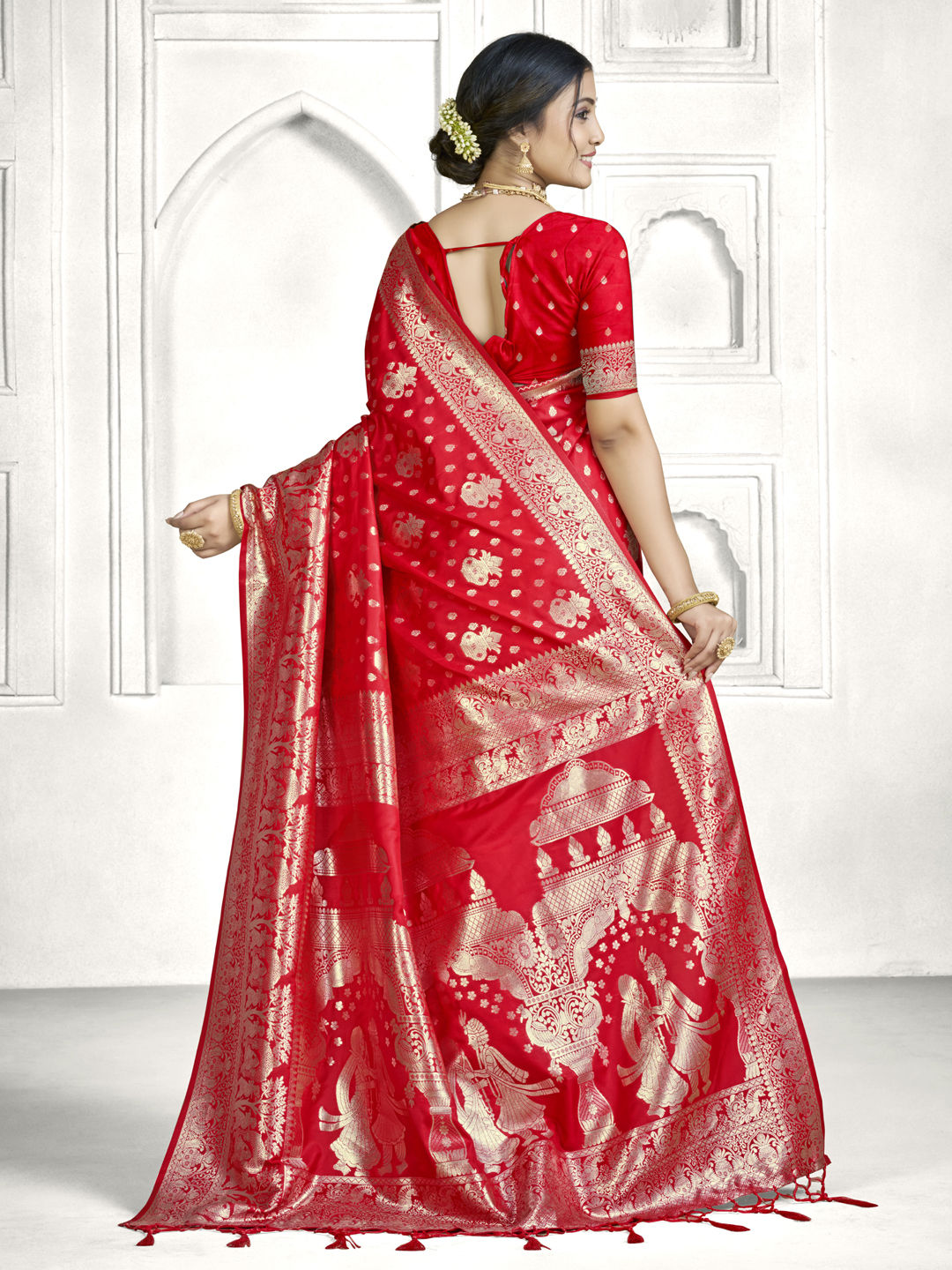Banarasi Silk Traditional Saree in Red and Maroon with Zari work