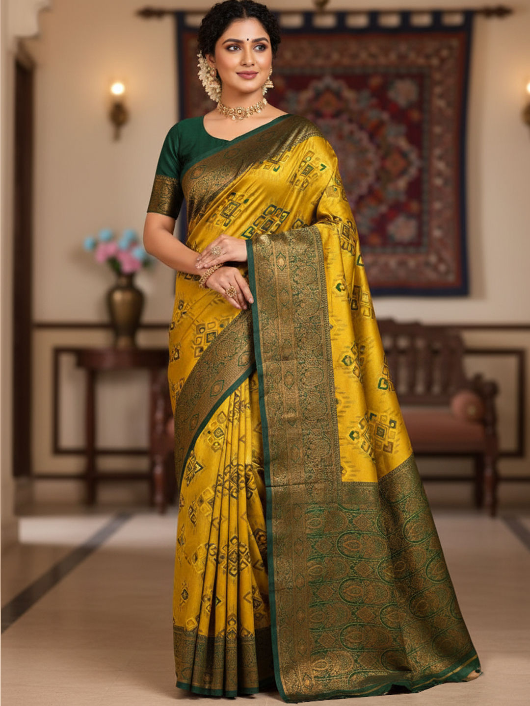 Yellow color Saree in Banarasi Silk fabric with Weaving work
