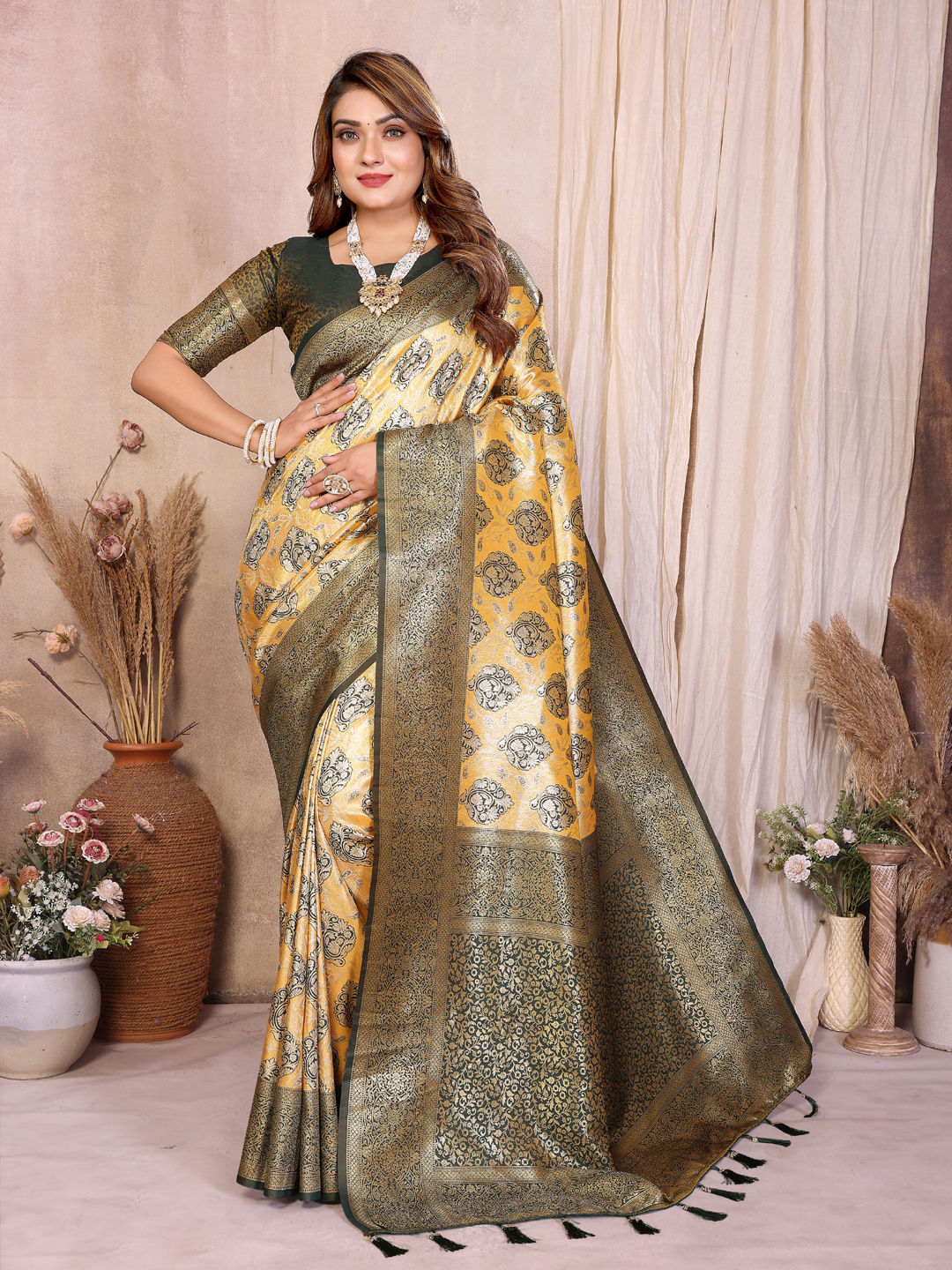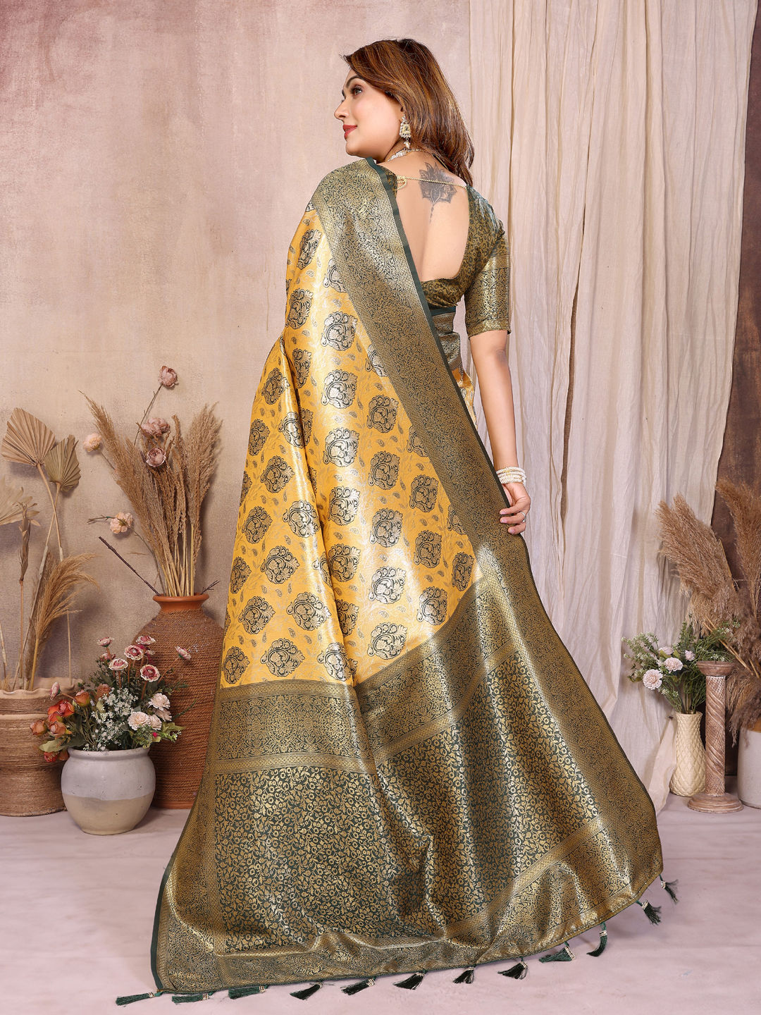 Yellow color Saree in Banarasi Silk, Tissue fabric with Weaving work
