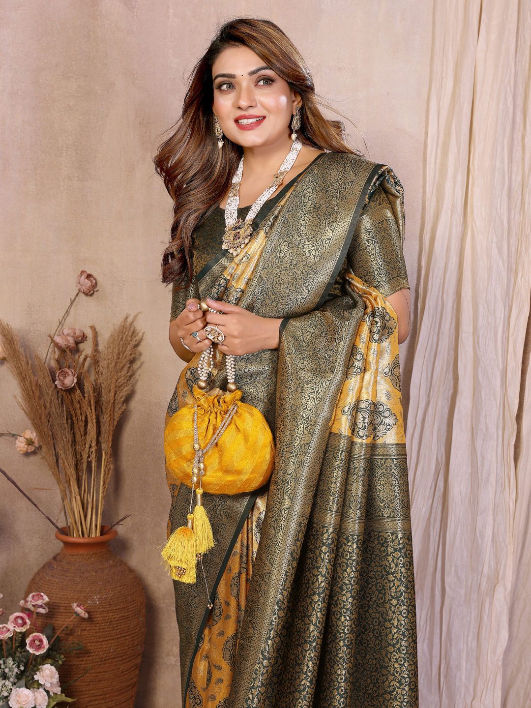 in Yellow with Weaving work