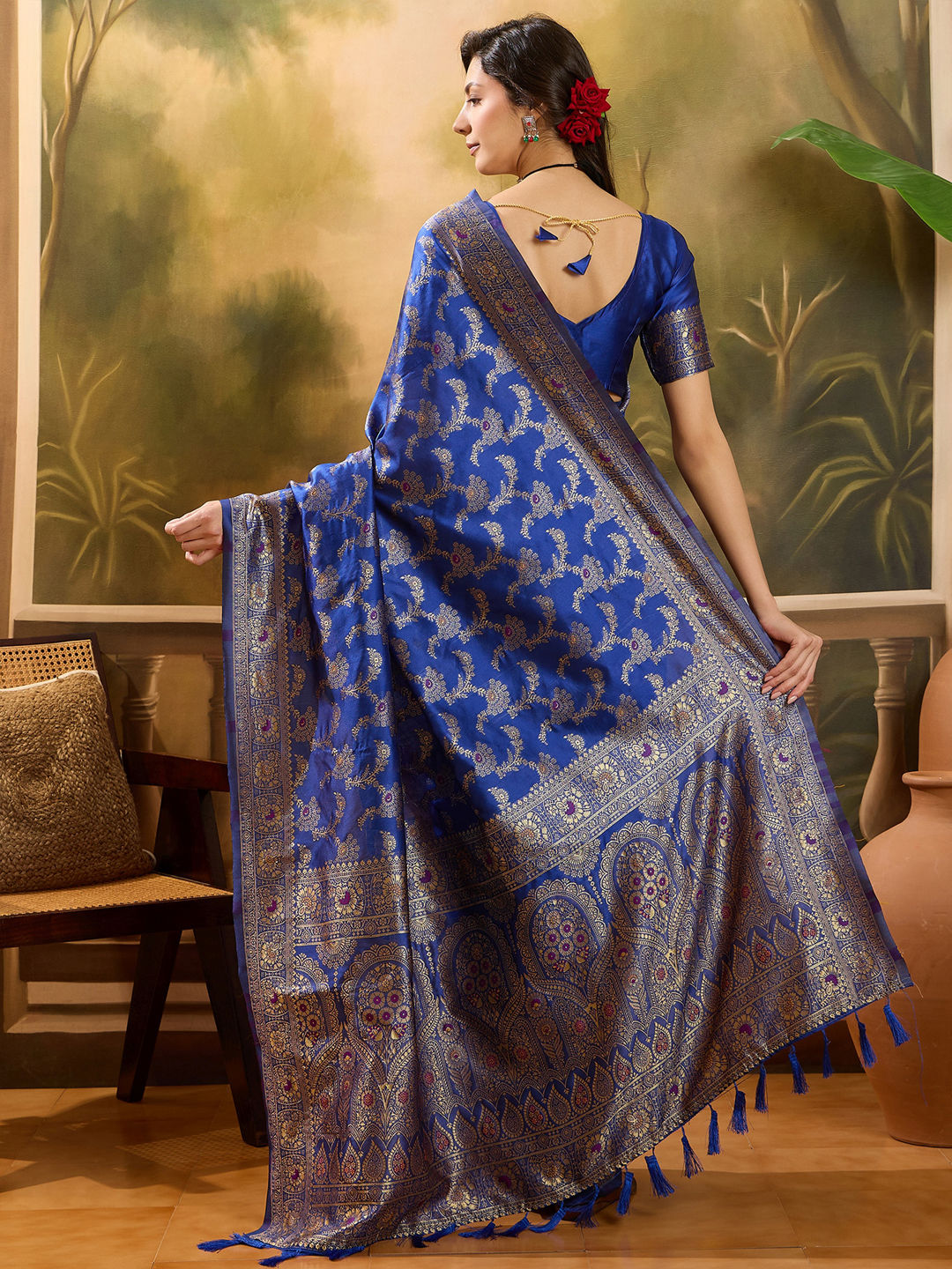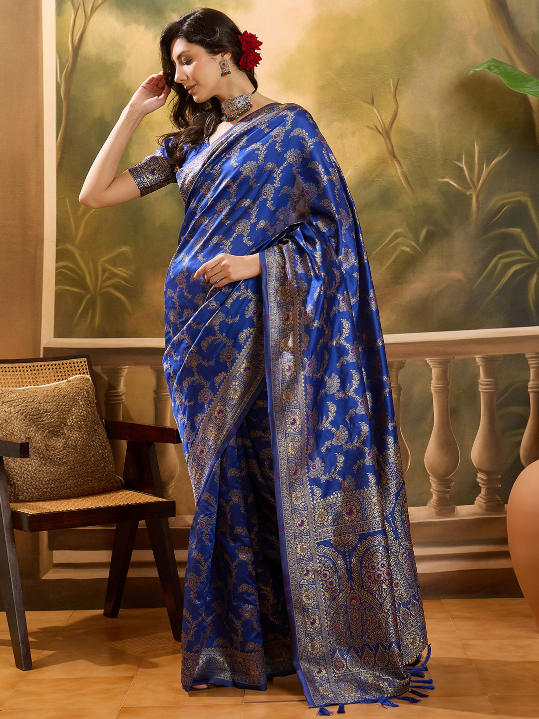 Blue color Saree in Banarasi Silk fabric with Weaving work