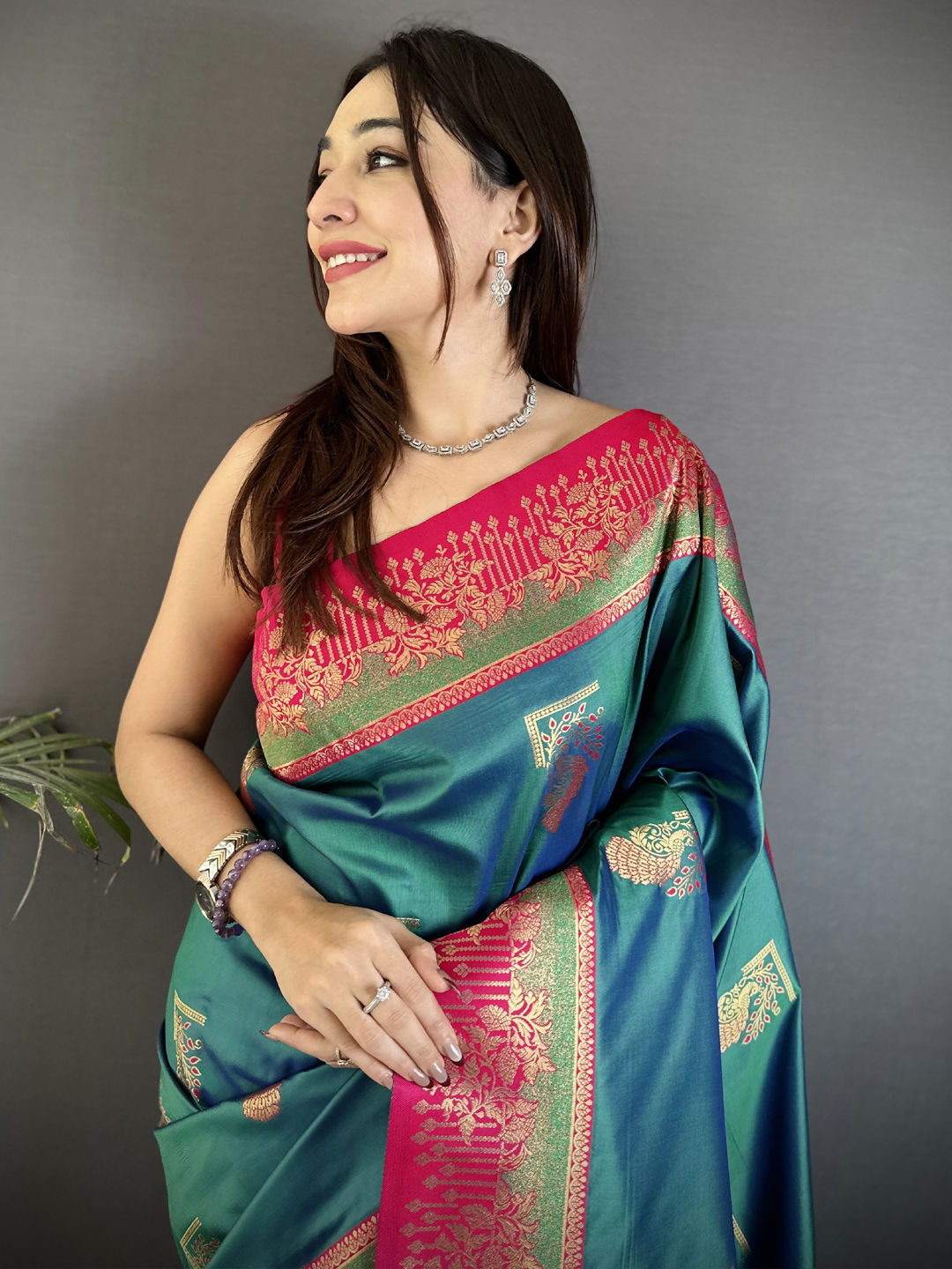 Banarasi Silk Party Wear Saree in Green with Weaving work