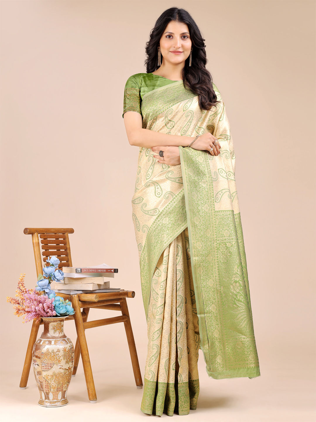 Beige and Brown, Green color Saree in Banarasi Silk fabric with Weaving work