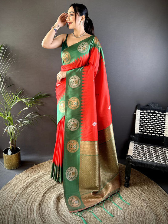 Banarasi Silk Traditional Saree in Red and Maroon with Zari work