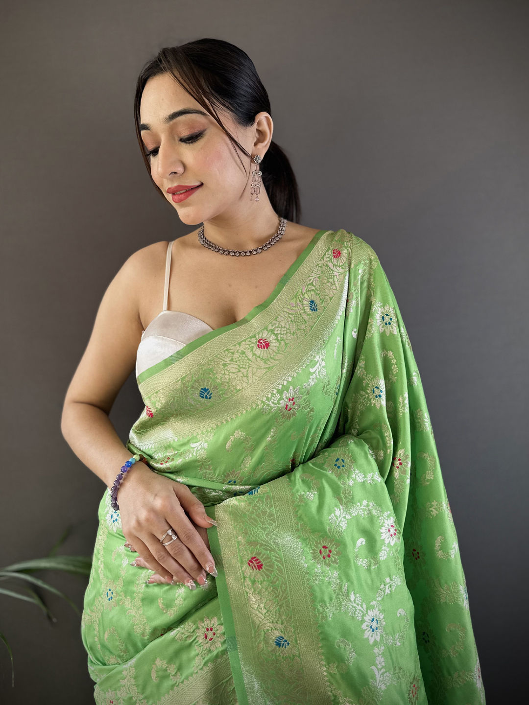 Green color Saree in Banarasi Silk fabric with Weaving work