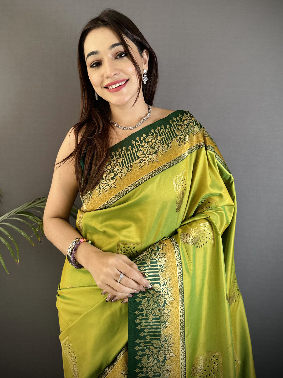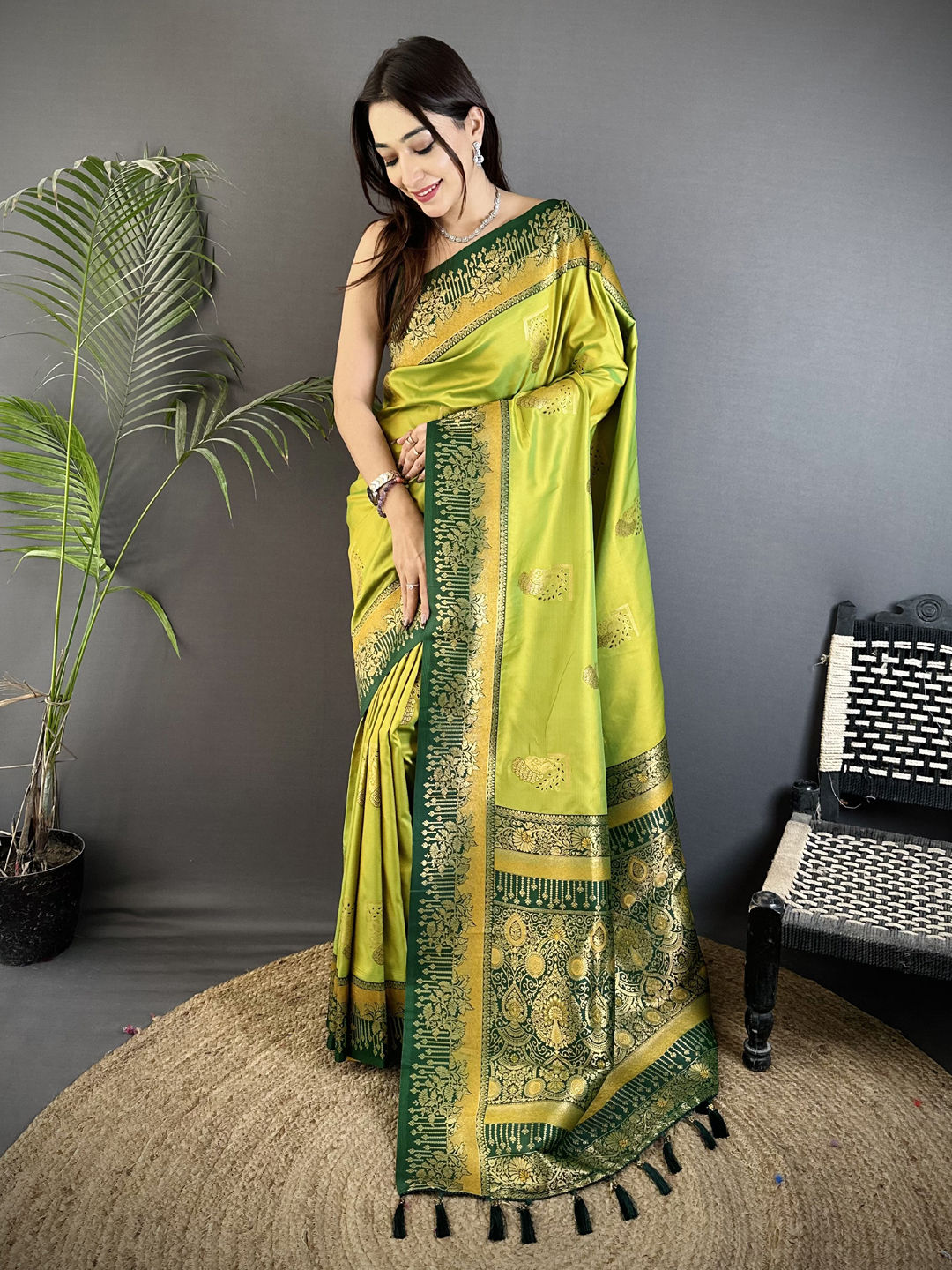 in Green with Weaving work