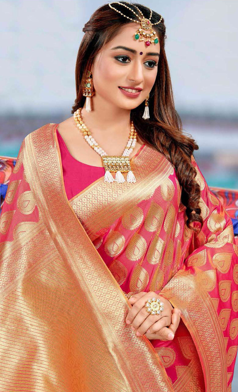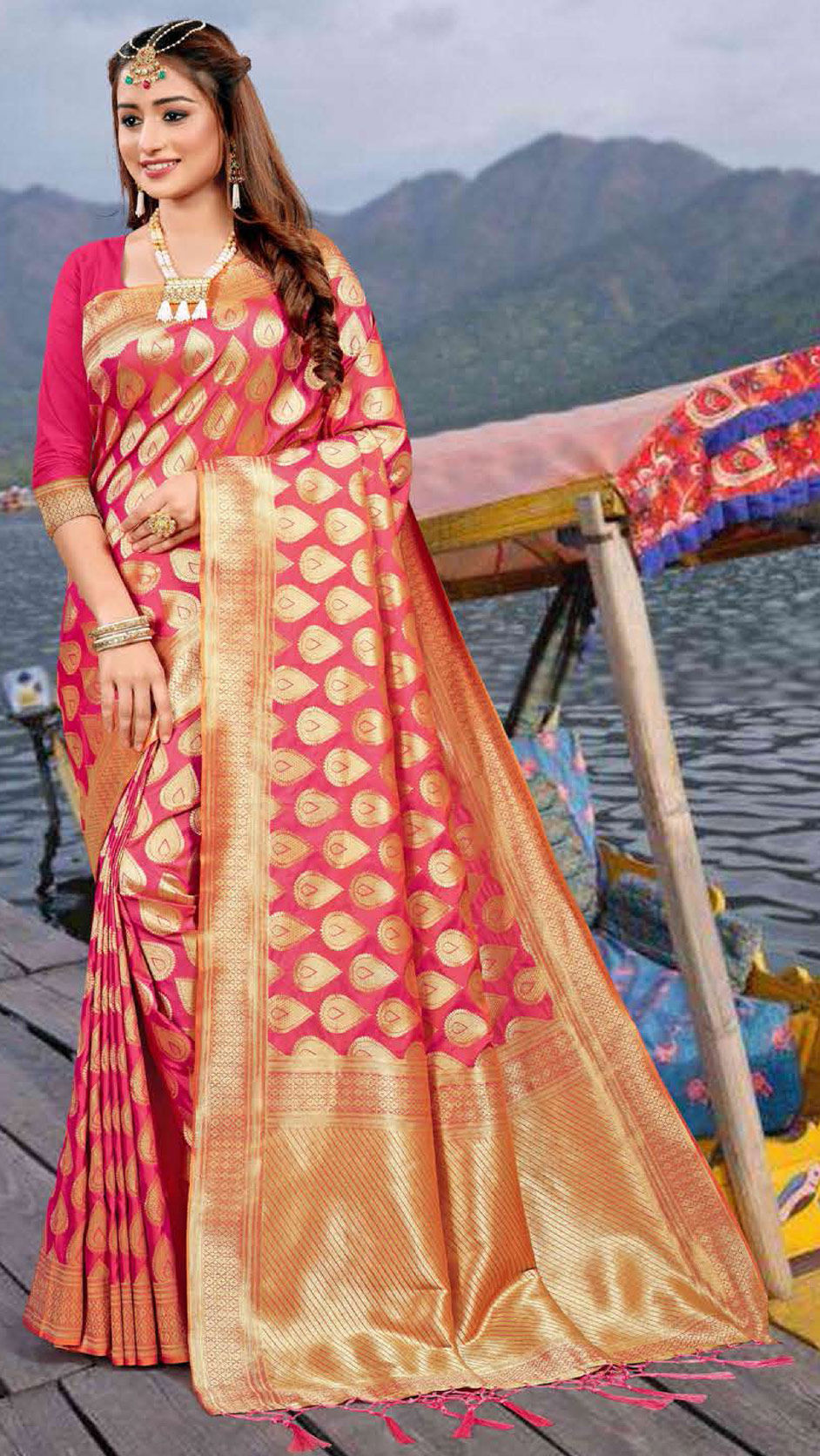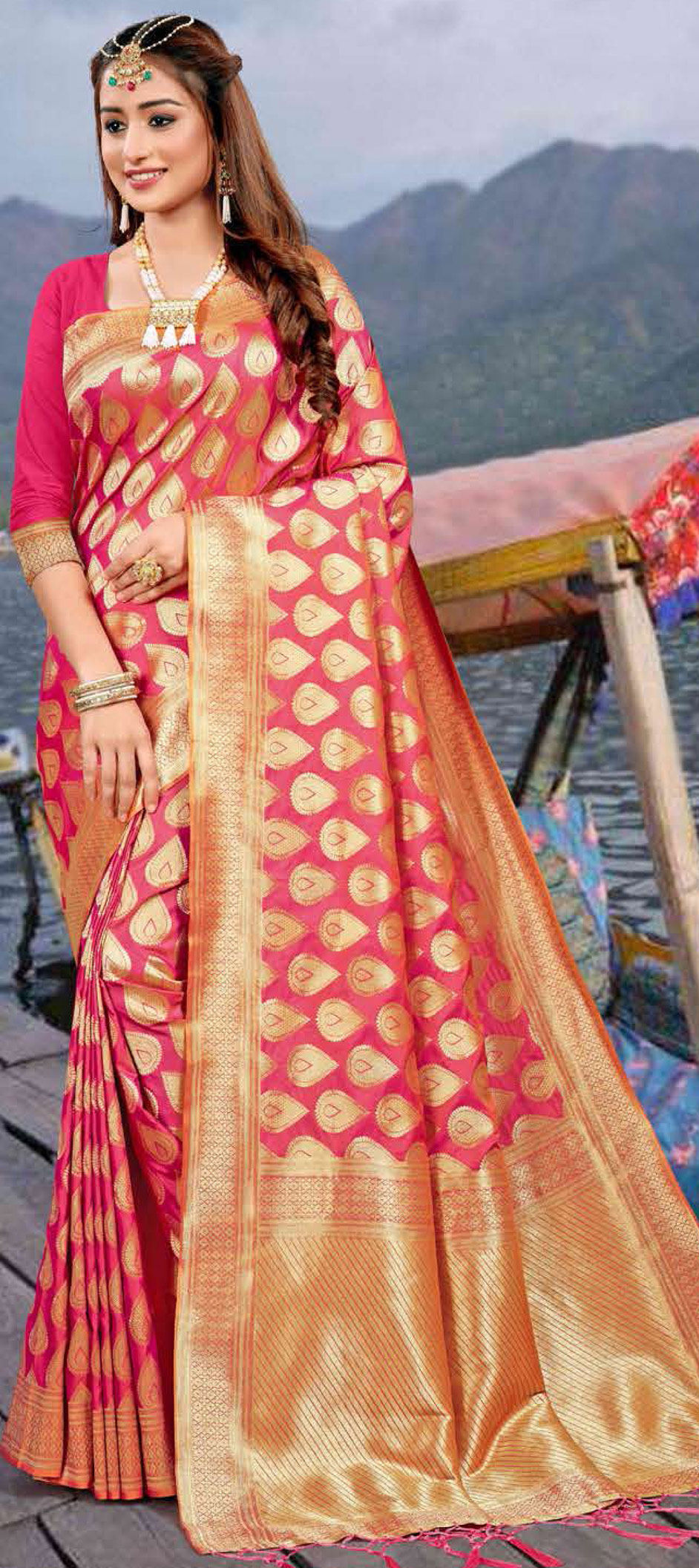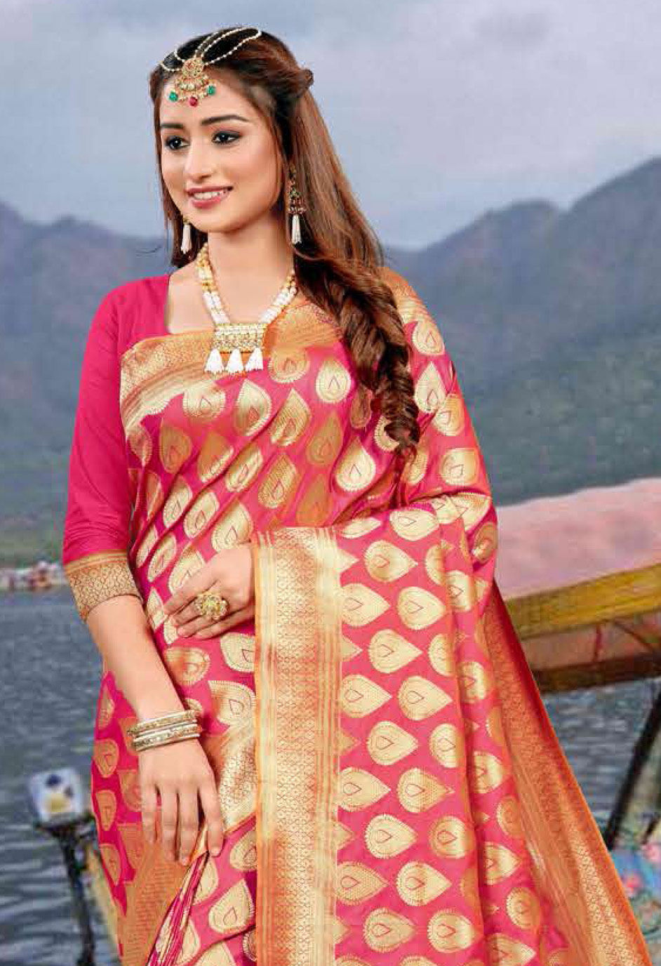 in Pink and Majenta with Weaving work