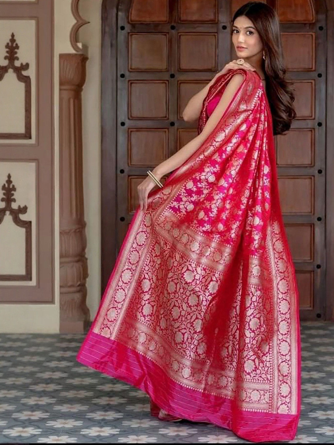 Pink and Majenta color Saree in Banarasi Silk fabric with Weaving work