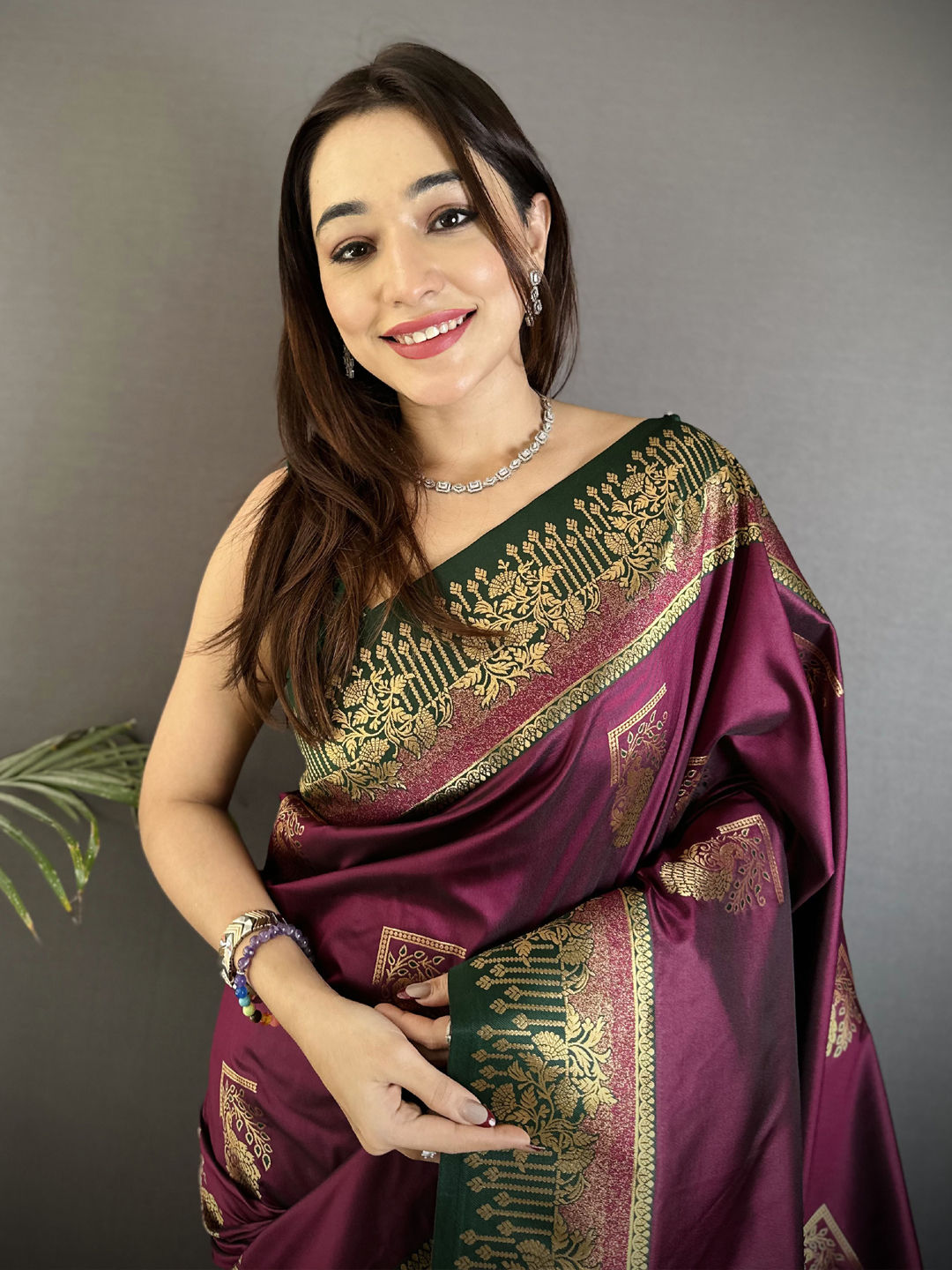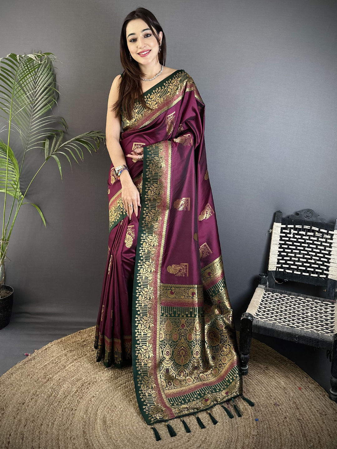 Banarasi Silk Reception Saree in Purple and Violet with Weaving work