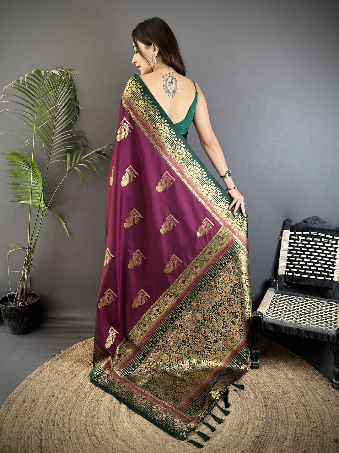 Banarasi Silk Traditional Saree in Pink and Majenta with Weaving work