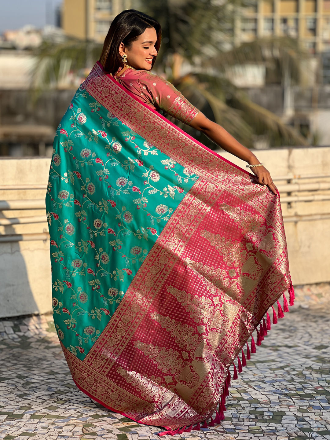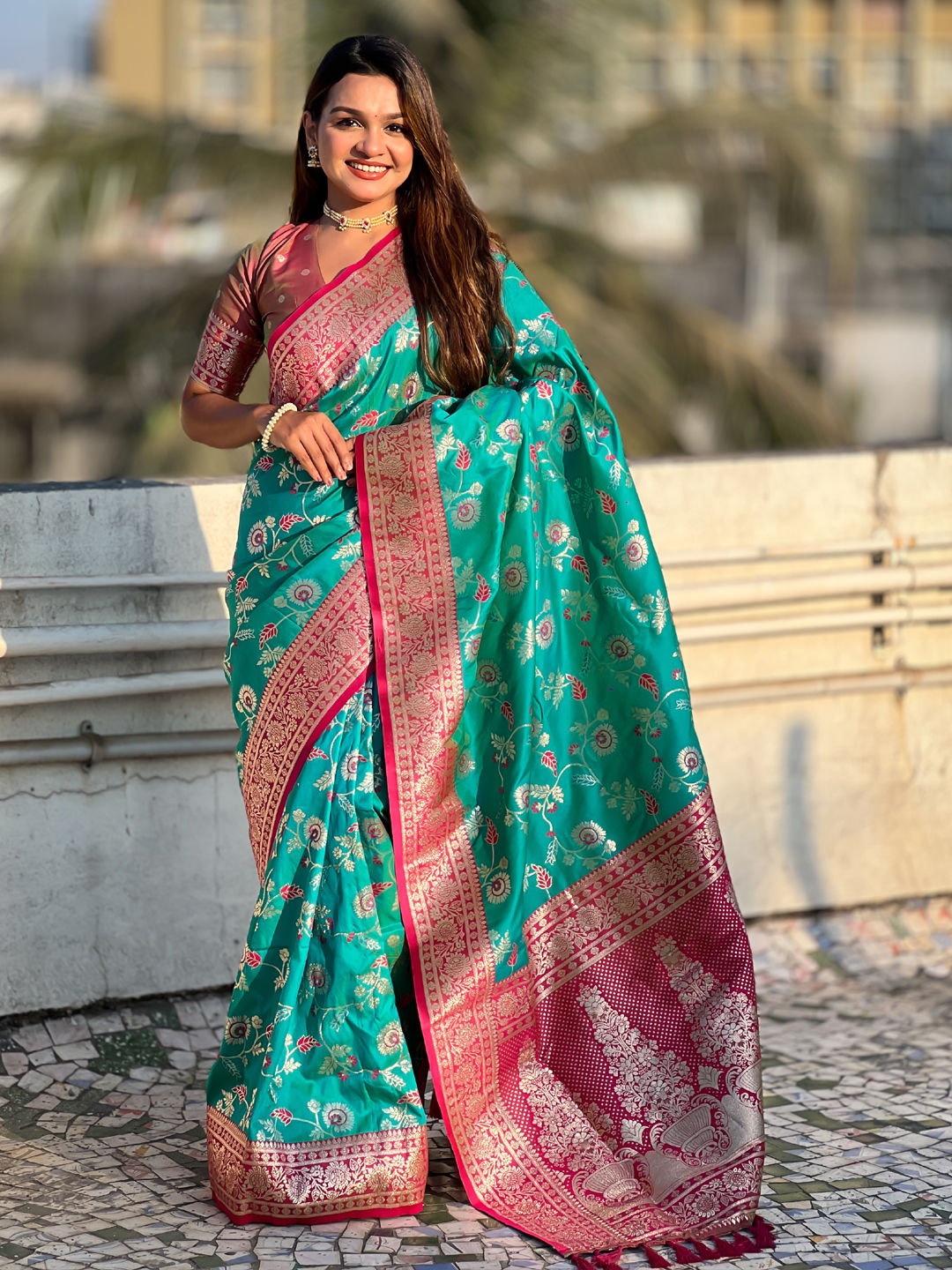 Banarasi Silk Traditional Saree in Green with Weaving work