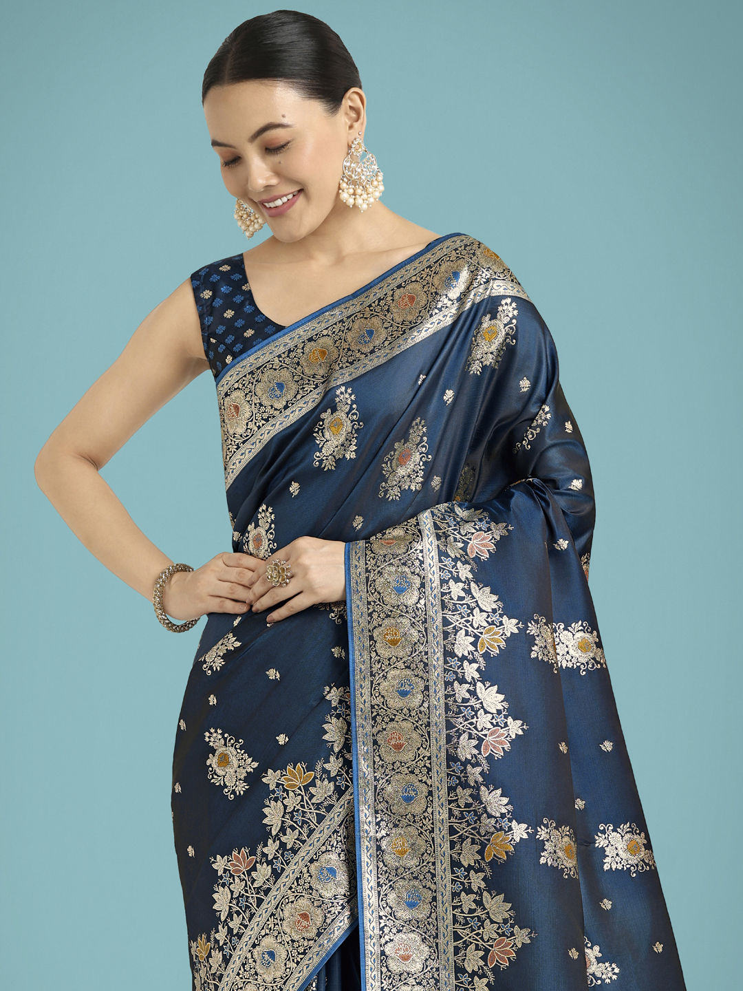 Blue color Saree in Banarasi Silk fabric with Weaving work