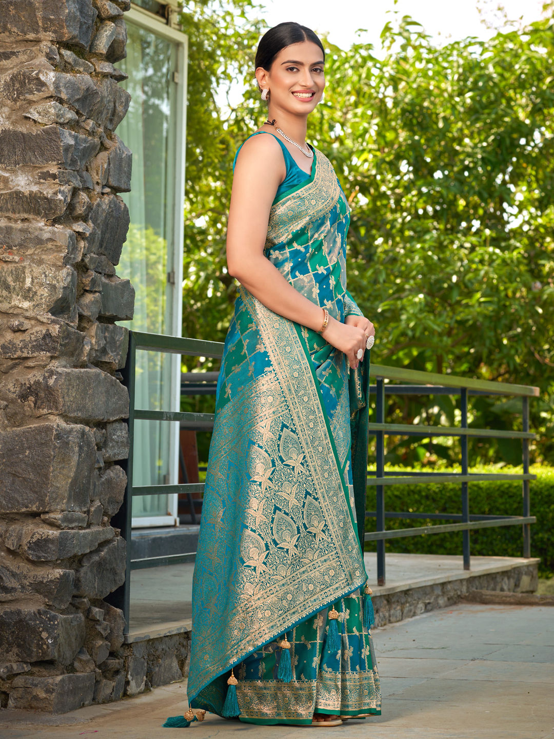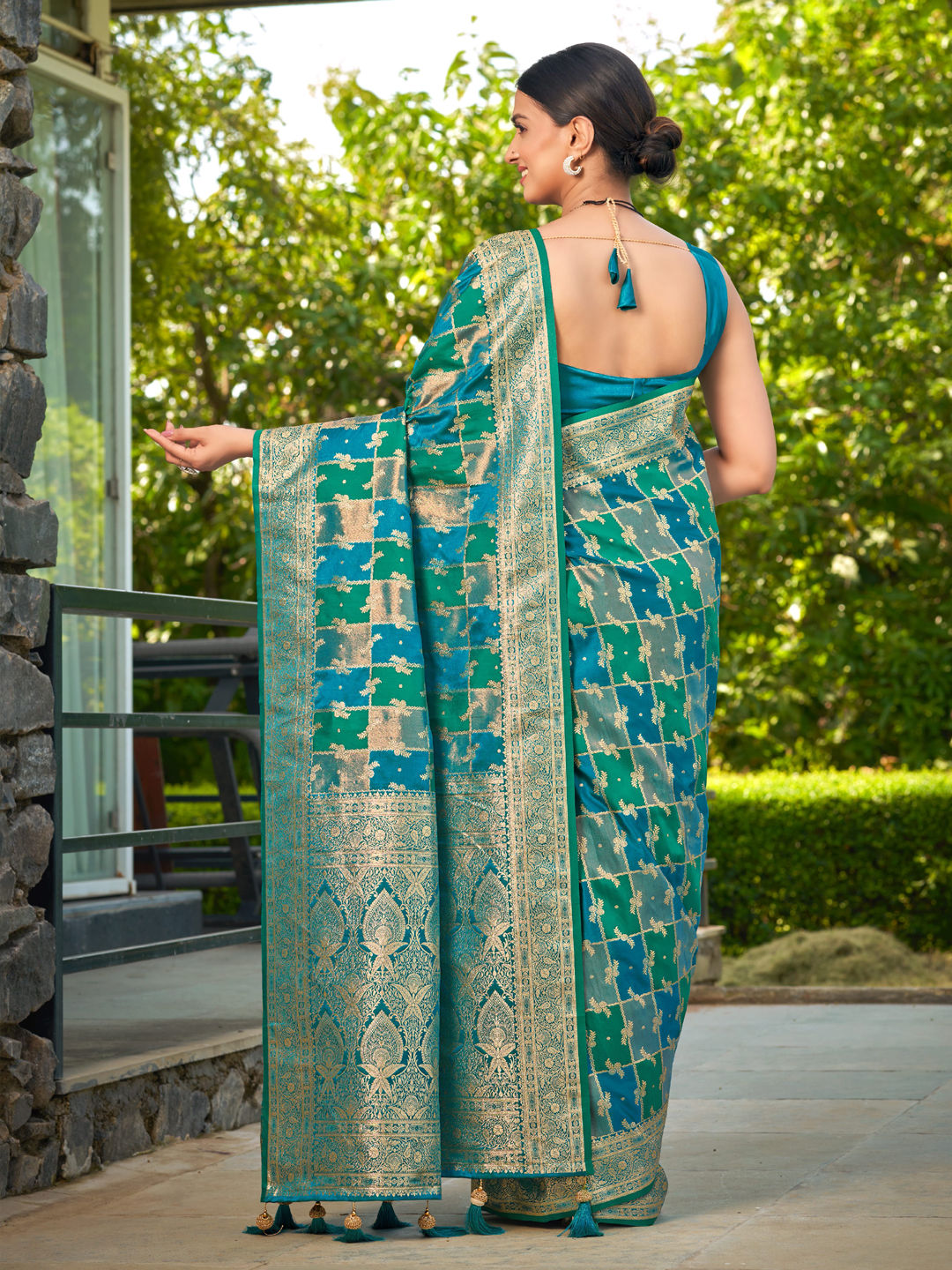 Banarasi Silk Wedding Saree in Blue with Zari work