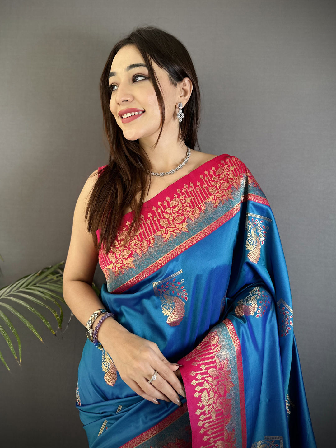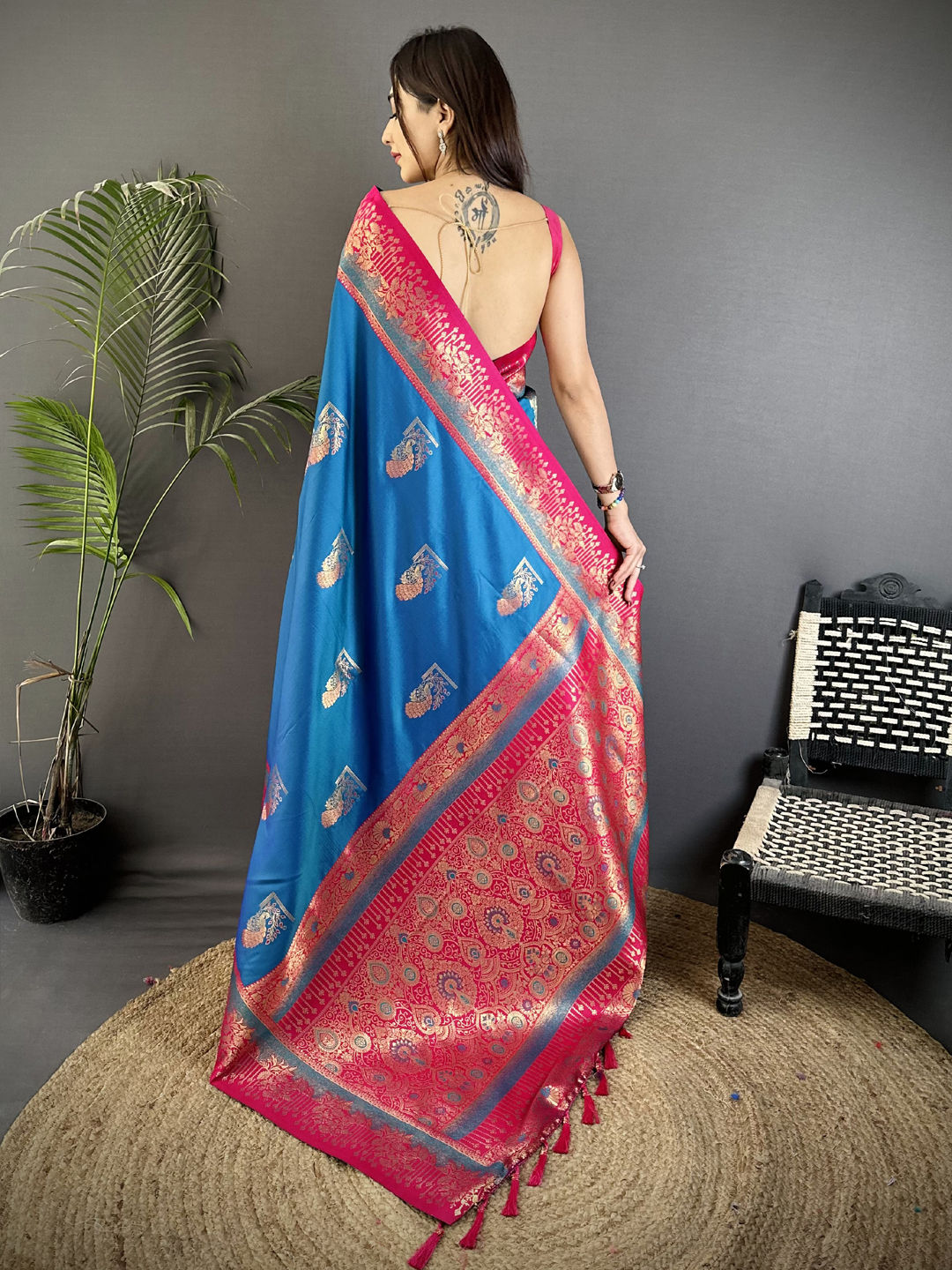Banarasi Silk Party Wear Saree in Blue with Weaving work