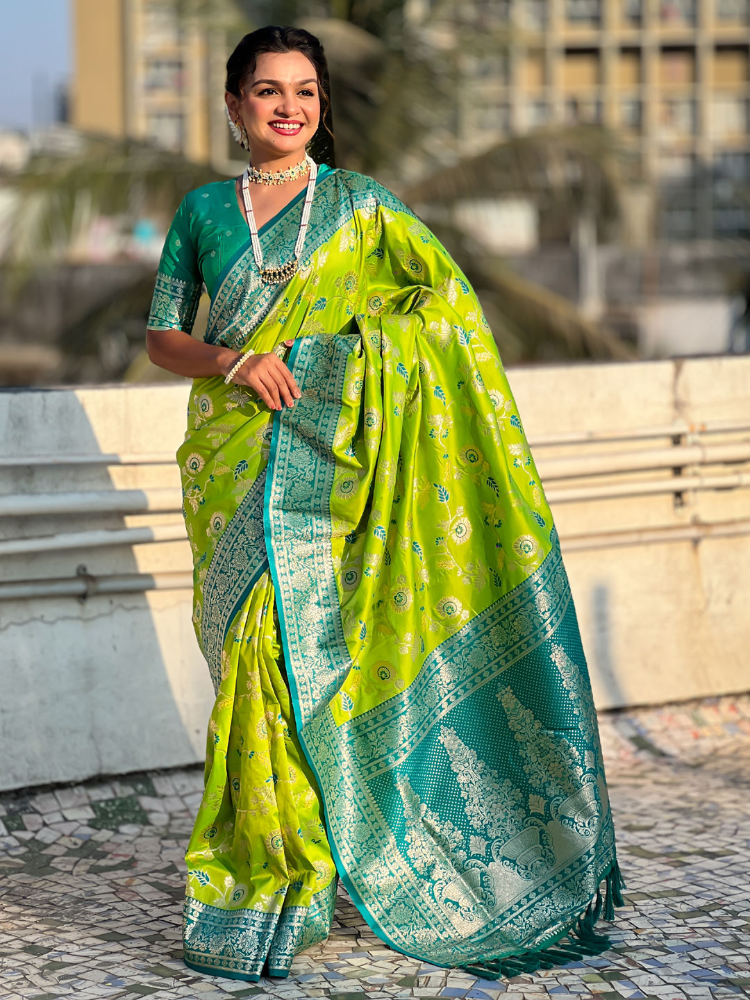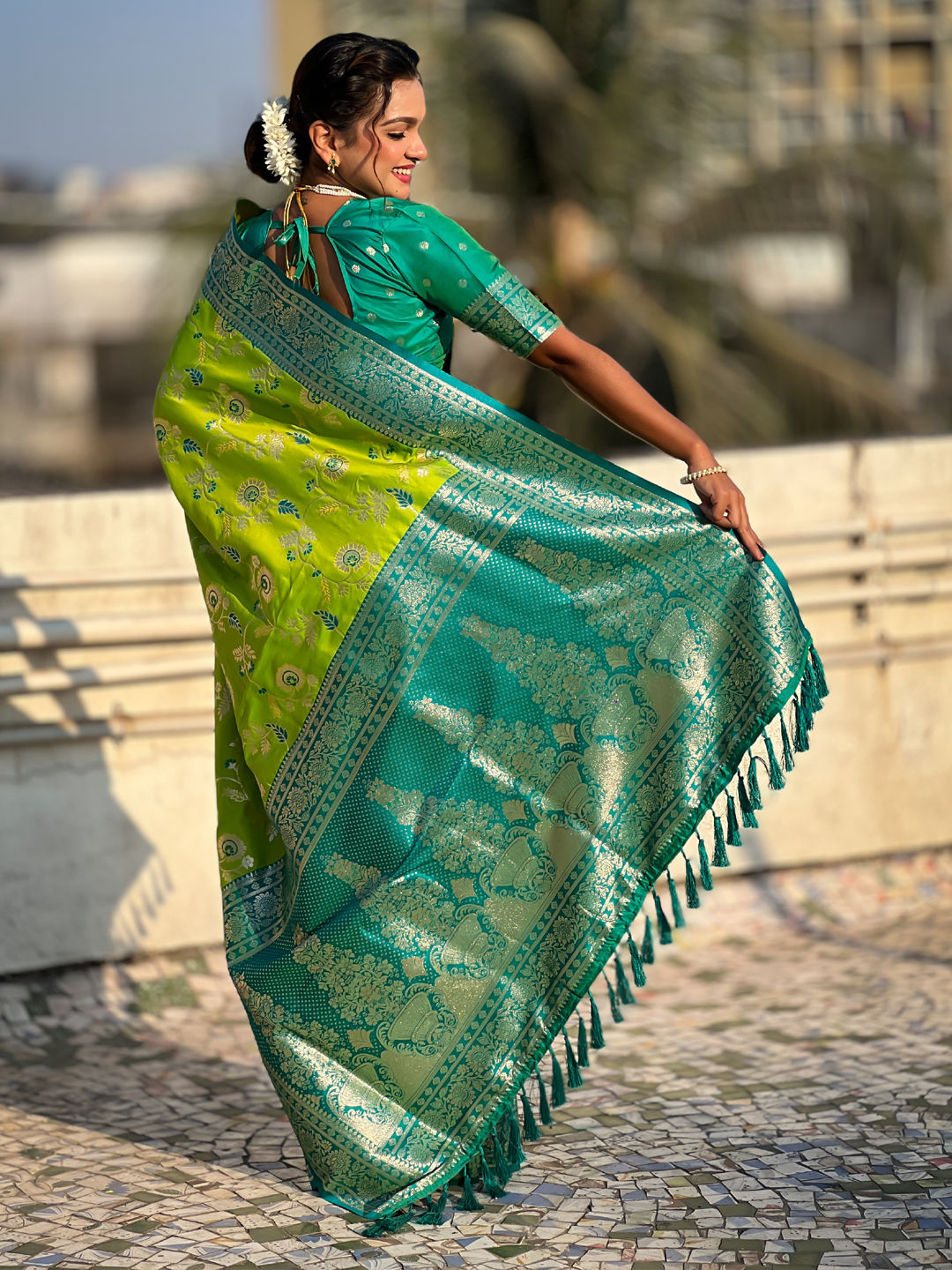 Banarasi Silk Traditional Saree in Green with Weaving work