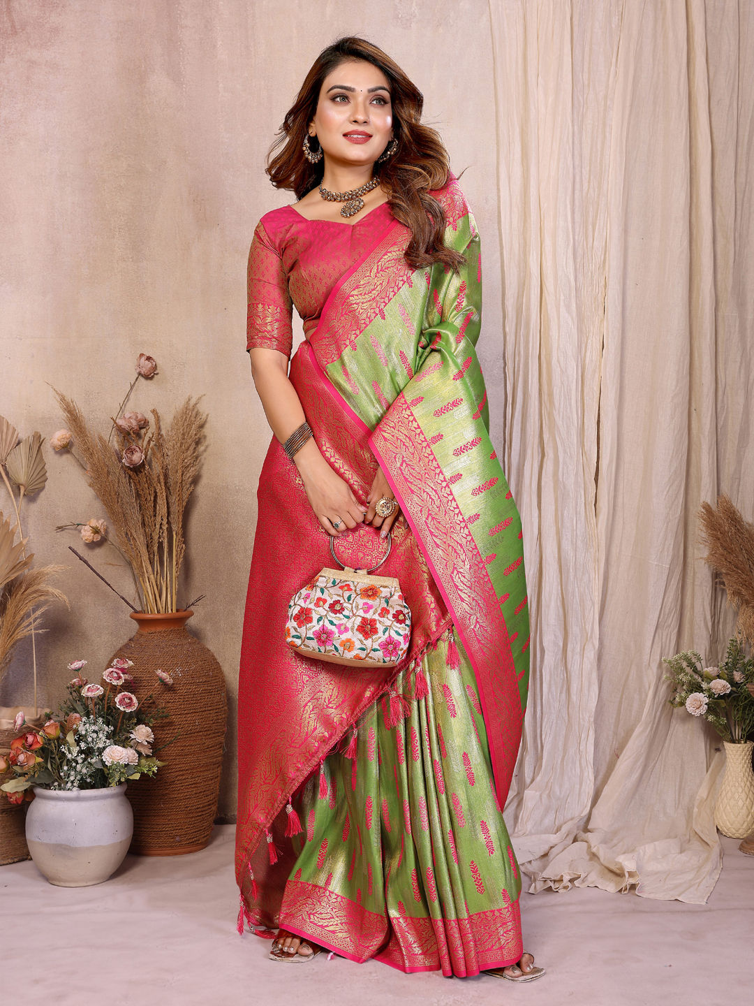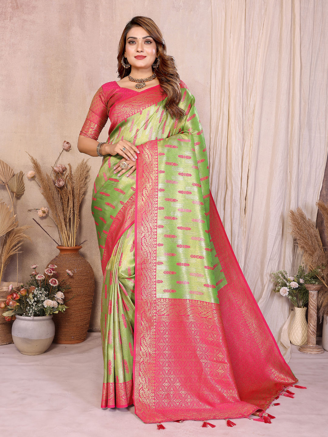 Tissue Traditional Saree in Green with Weaving work