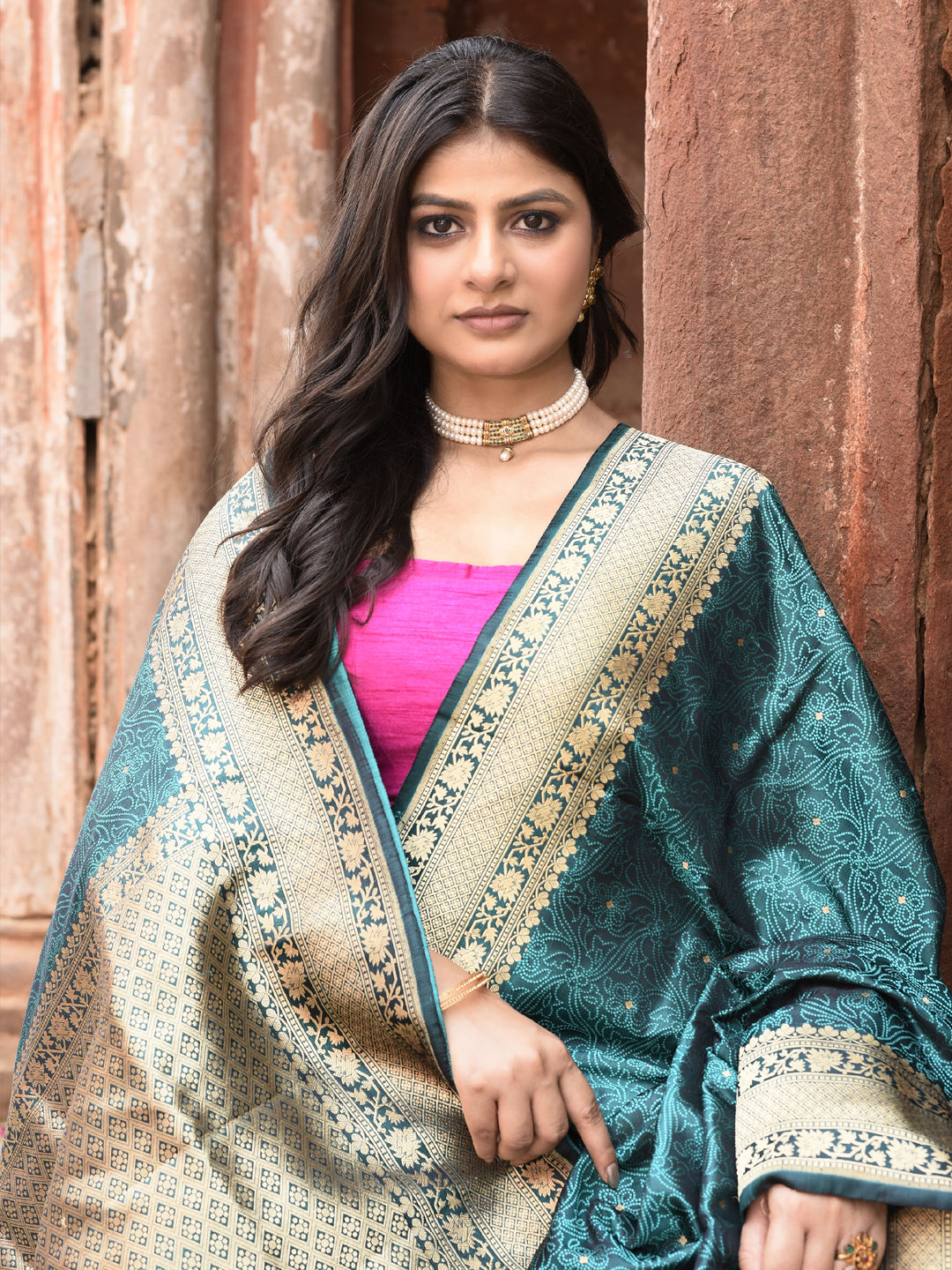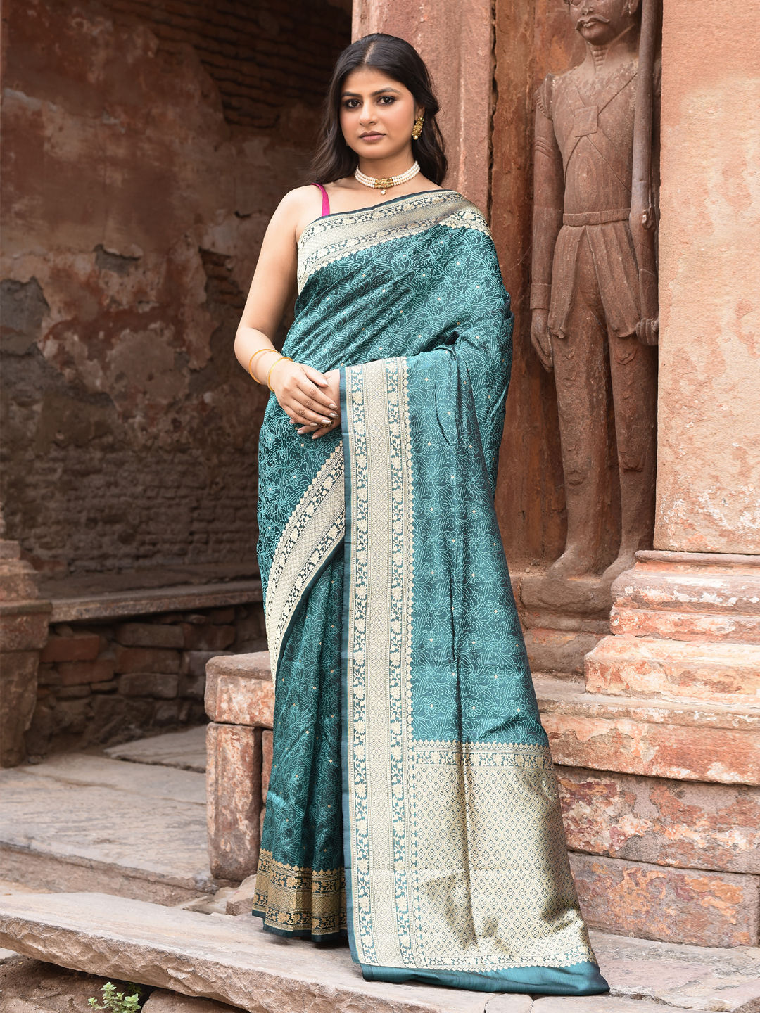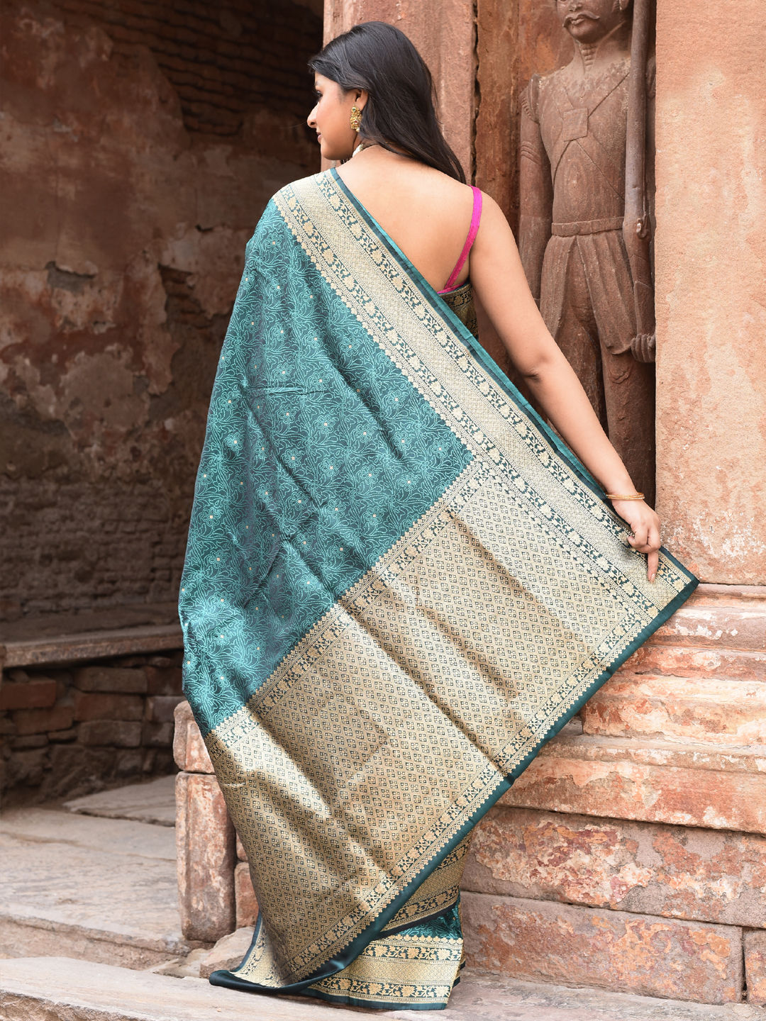 Green color Saree in Banarasi Silk fabric with Border, Zari work