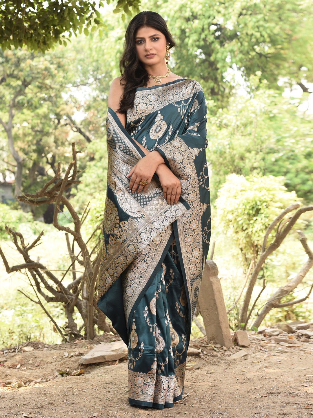 Green color Saree in Banarasi Silk fabric with Border, Zari work