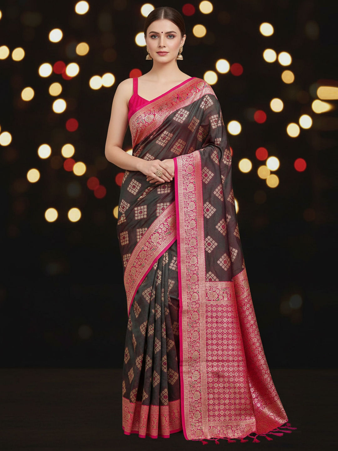 Banarasi Silk Traditional Saree in Pink and Majenta with Zari work