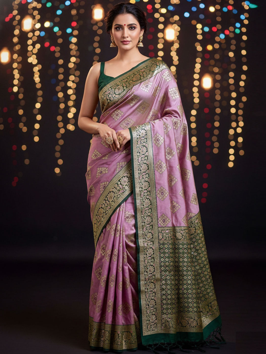 Banarasi Silk Traditional Saree in Pink and Majenta with Zari work