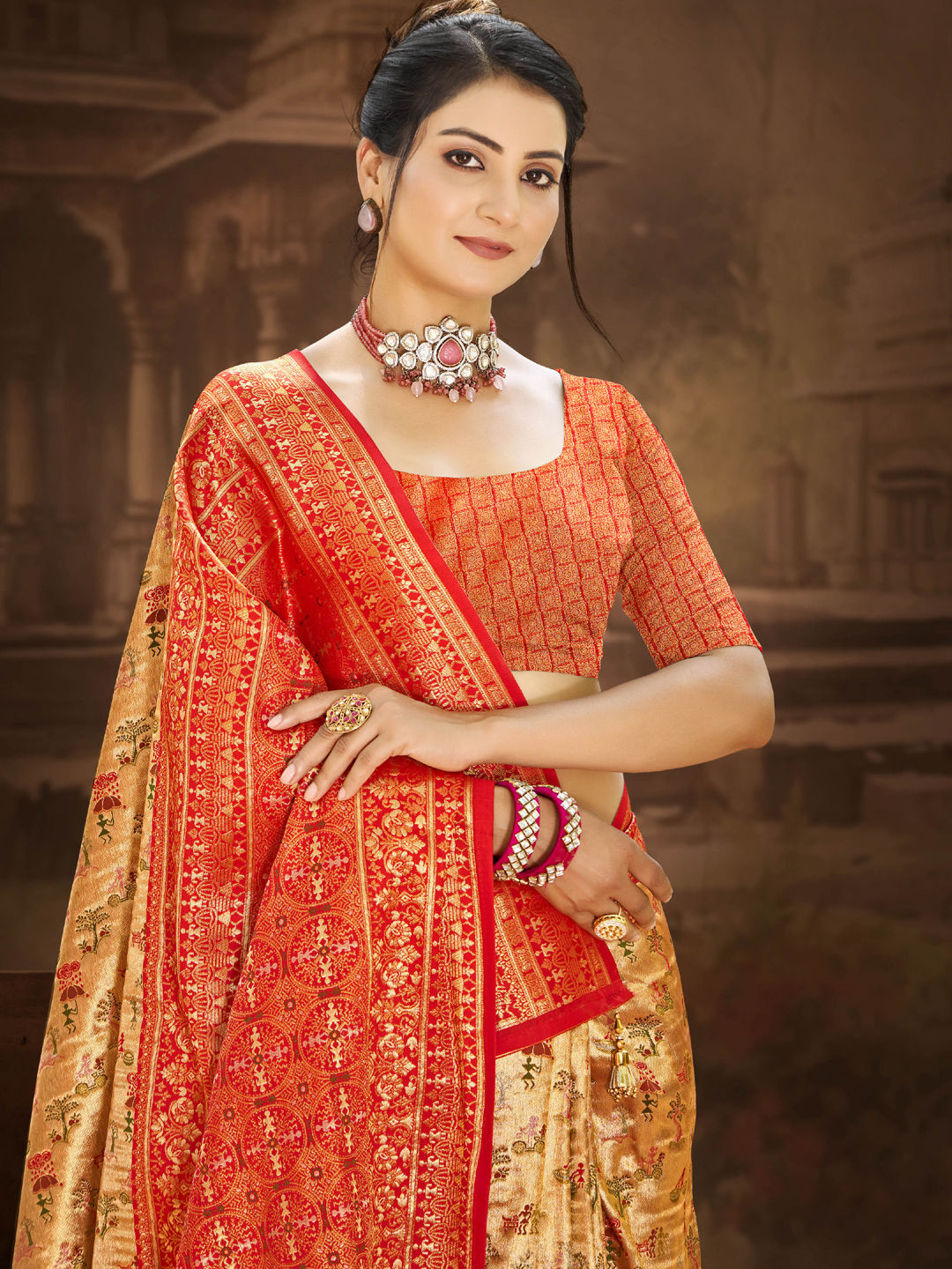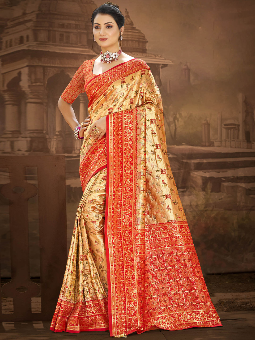 Banarasi Silk Festive Saree in Beige and Brown with Weaving work