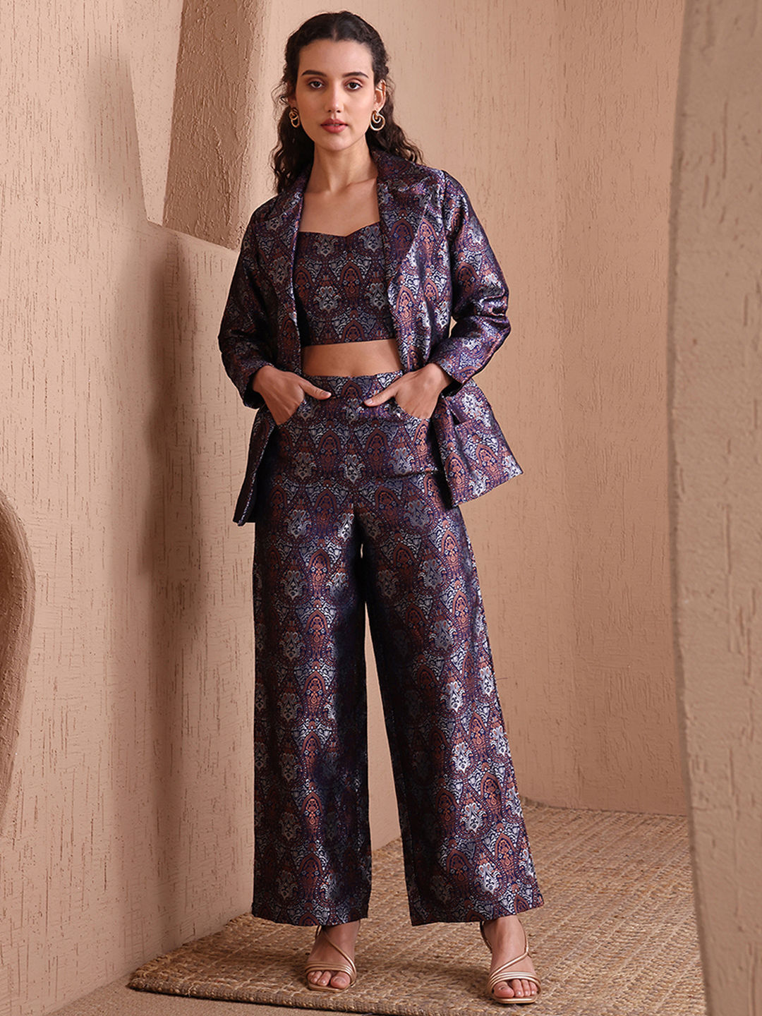 Blue color Co-ords Set in Banarasi Silk fabric with Weaving work