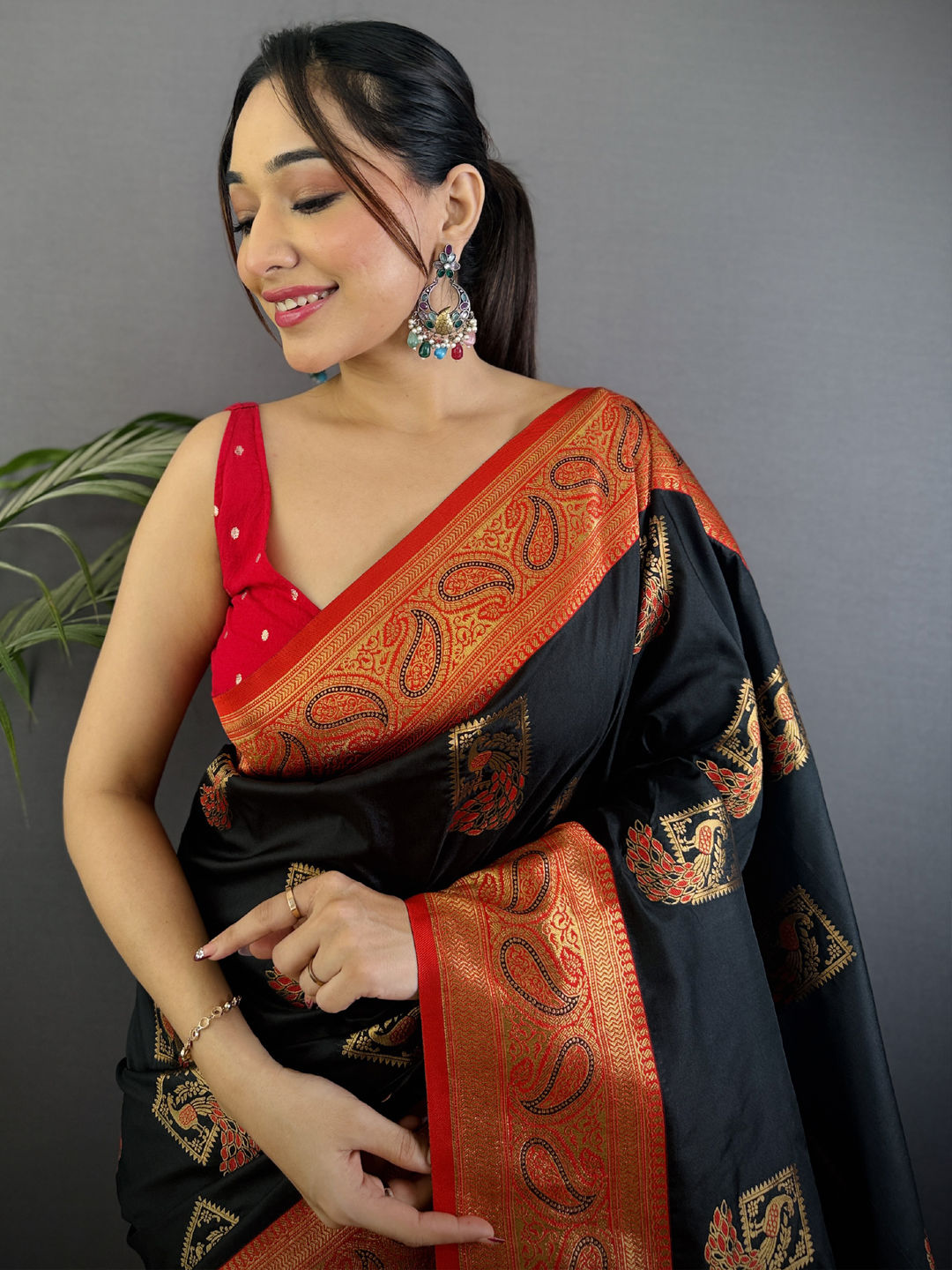 Black and Grey color Saree in Banarasi Silk fabric with Weaving work