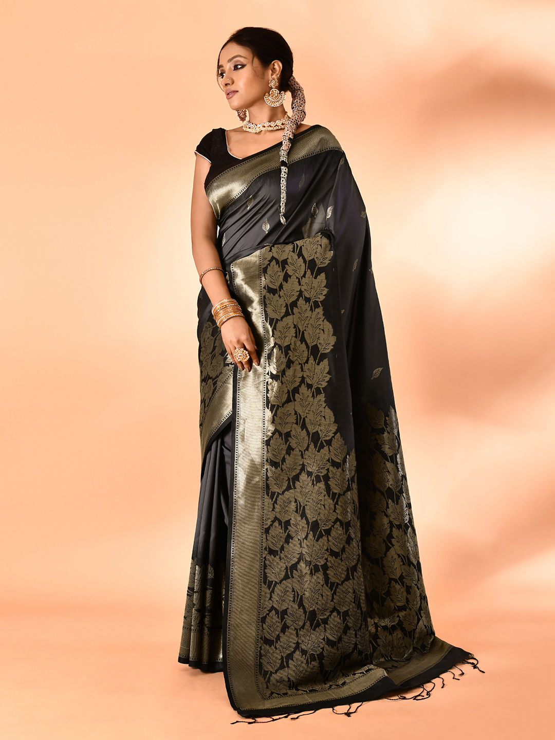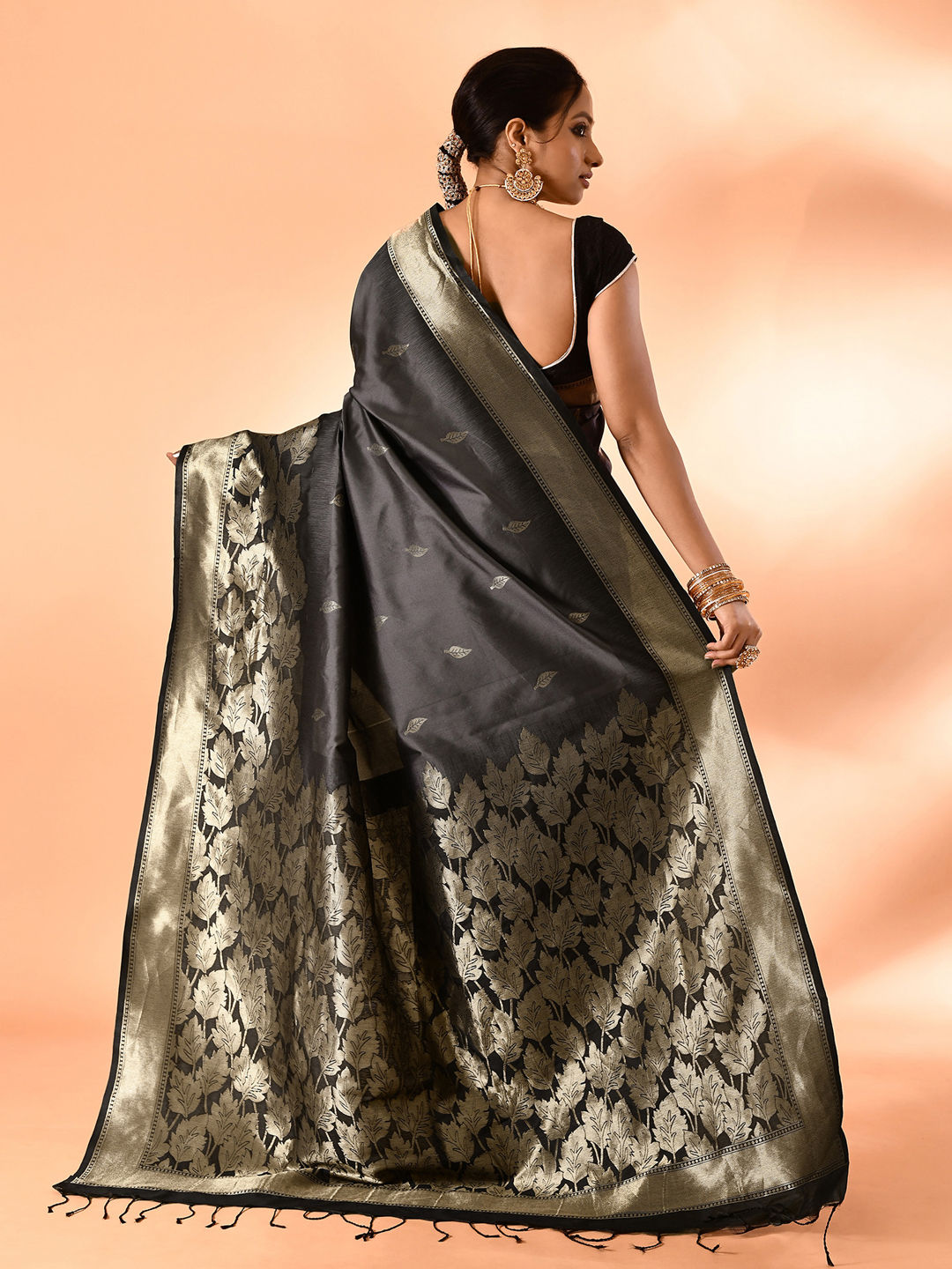 Black and Grey color Saree in Banarasi Silk fabric with Weaving work